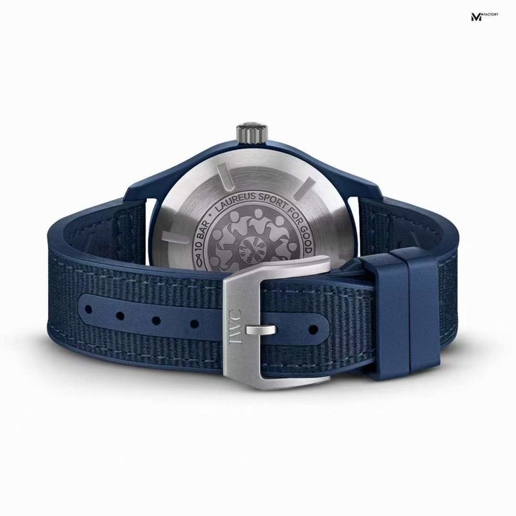 表带是采用的尼龙材质搭配天然橡胶,很适合夏天佩戴,不用担心出汗。表扣同样也是钛金属材质,镌刻万国iwc标志logo。