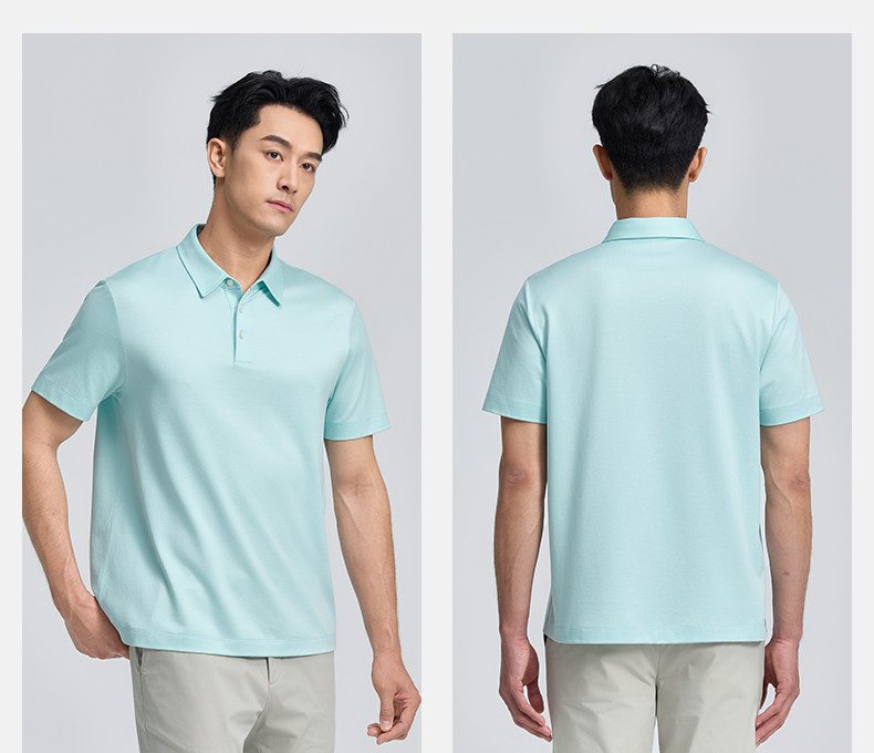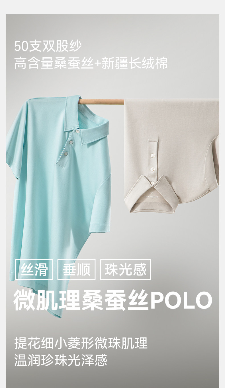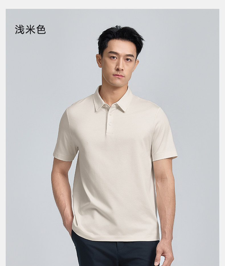【门店同款】十如仕微弹提花微肌理桑蚕丝原身领短袖POLO衫P23-02