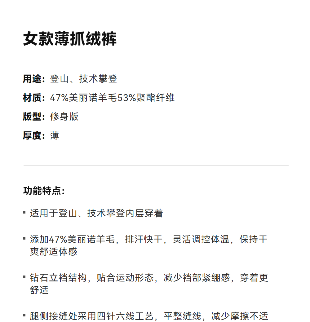 KAILAS凯乐石 女款薄抓绒裤 KG2542403