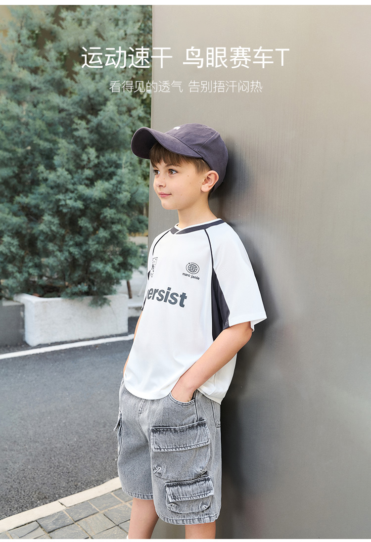 【速干T】马克珍妮男童条纹赛车短袖T恤 儿童上衣夏装新款550597