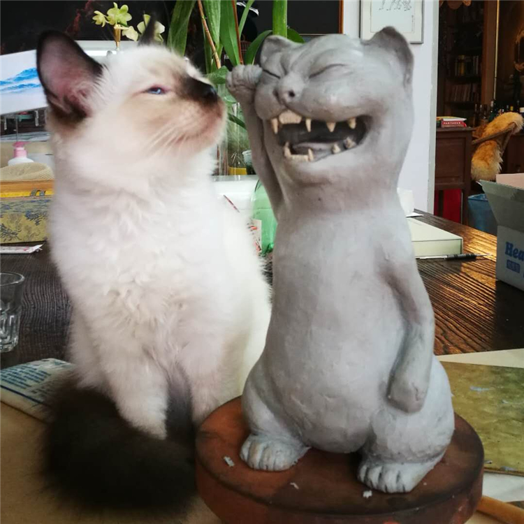 不仁斋 陶瓷雕塑系列 陶瓷招财猫 不含底座