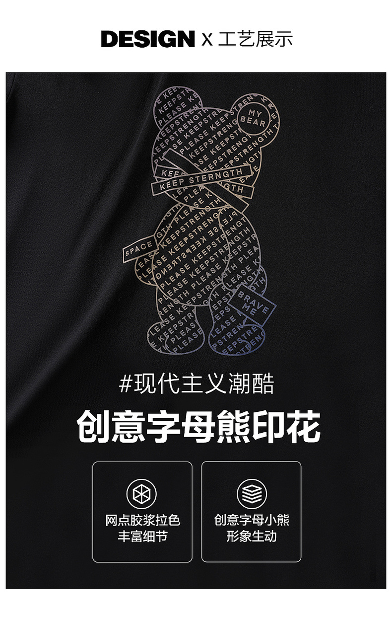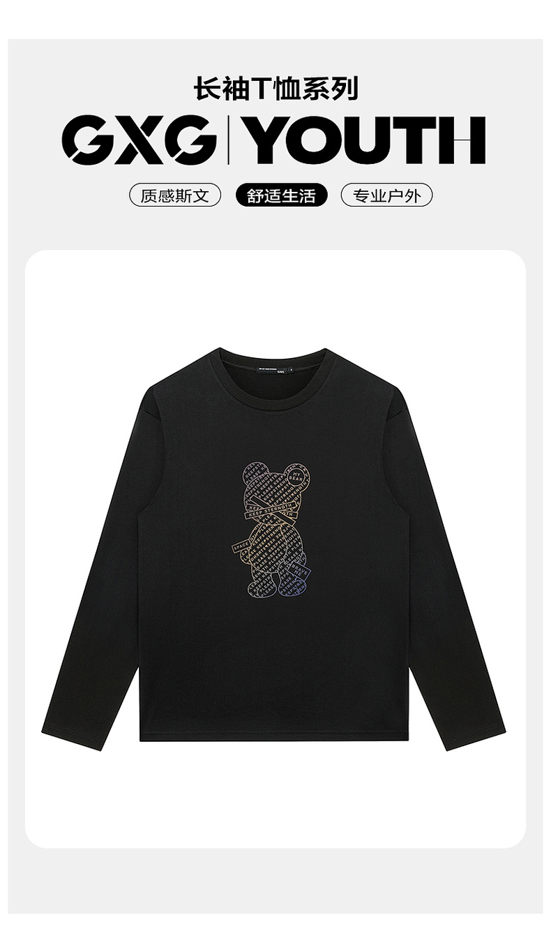 GXG男装【字母小熊】春季男女同款时尚圆领纯棉长袖t恤上衣K&C