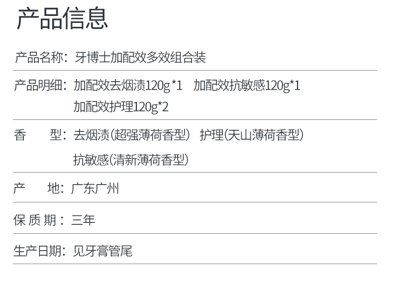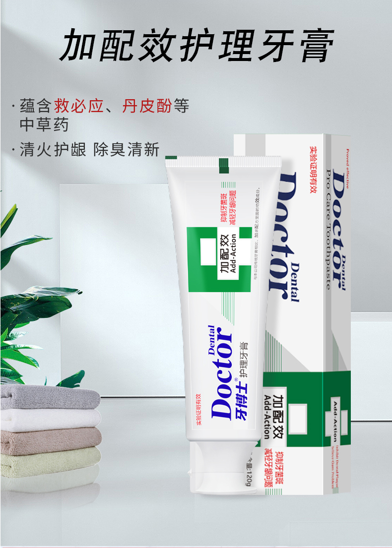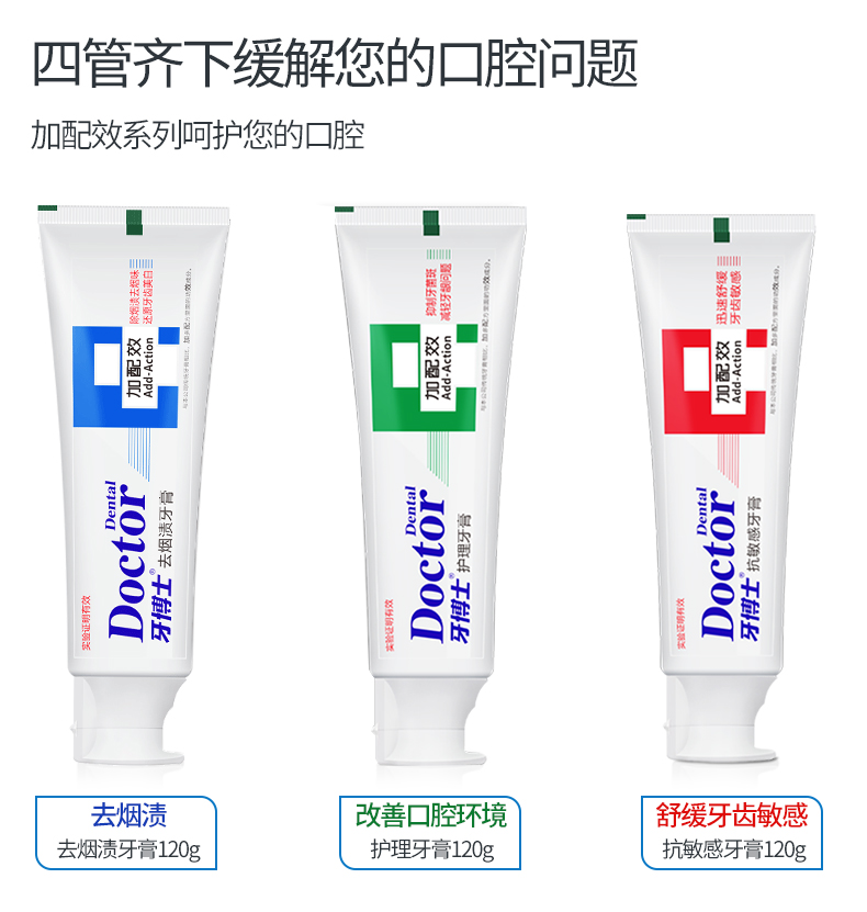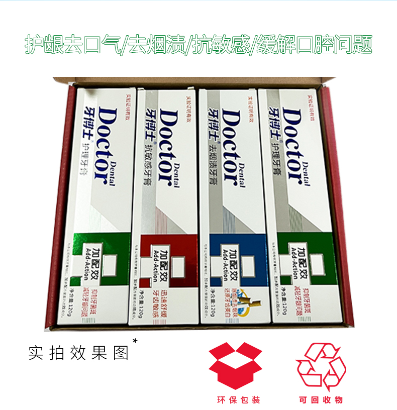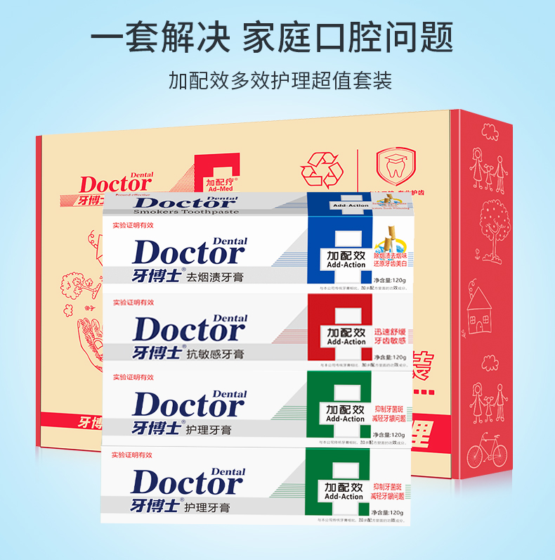 牙博士多效护理牙膏套装洁白牙齿淡黄牙渍缓解舒敏呵护牙龈清新口气120g*4只装
