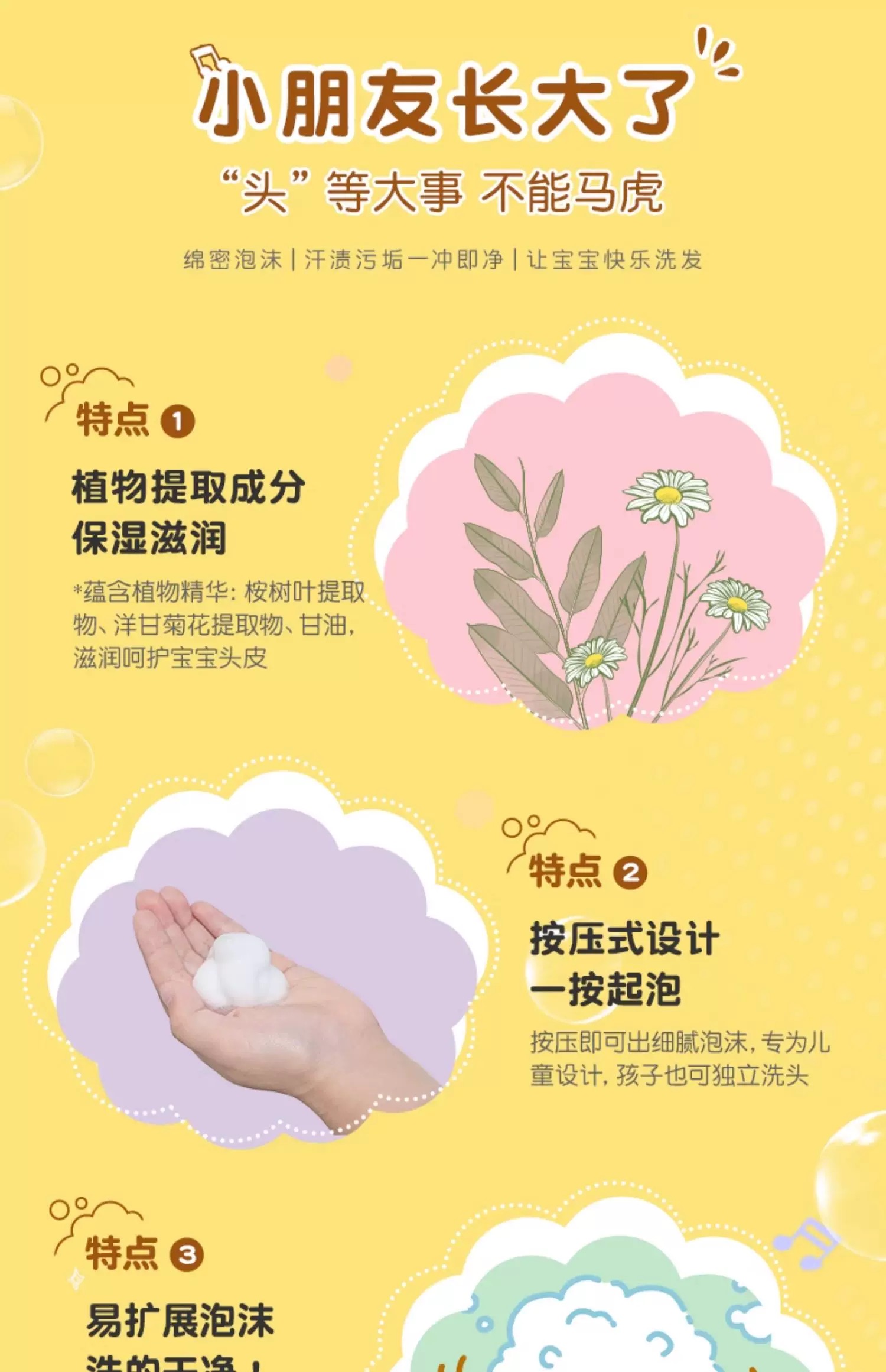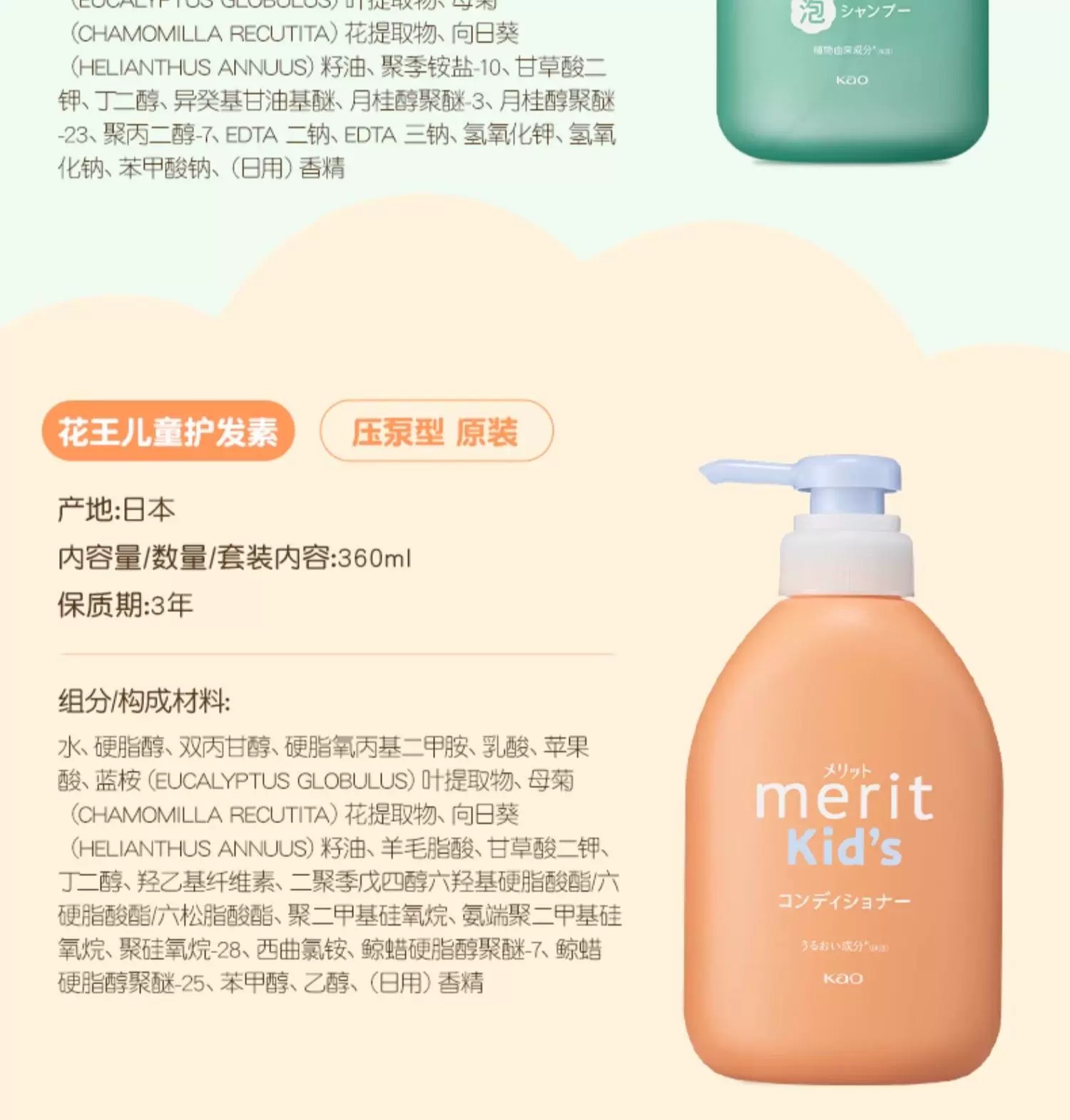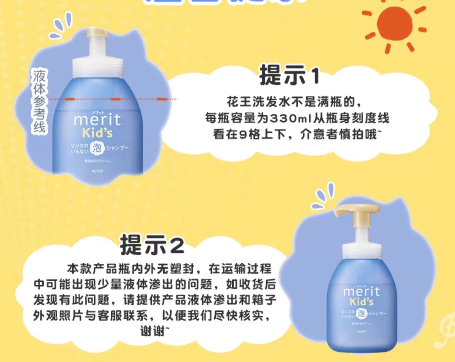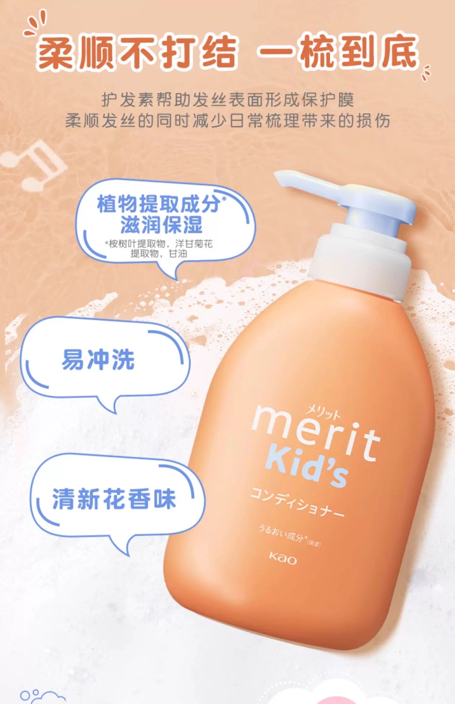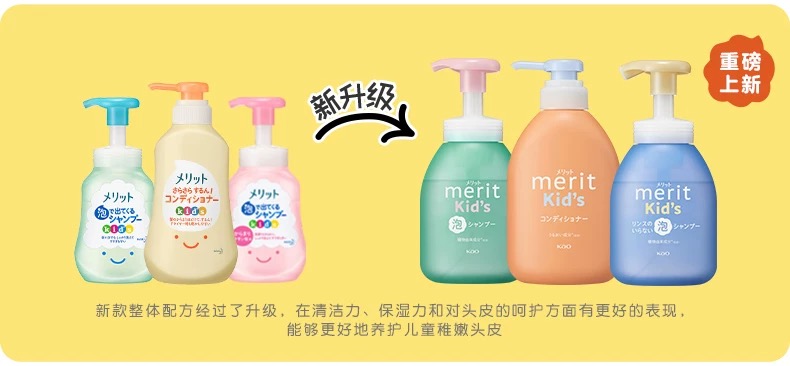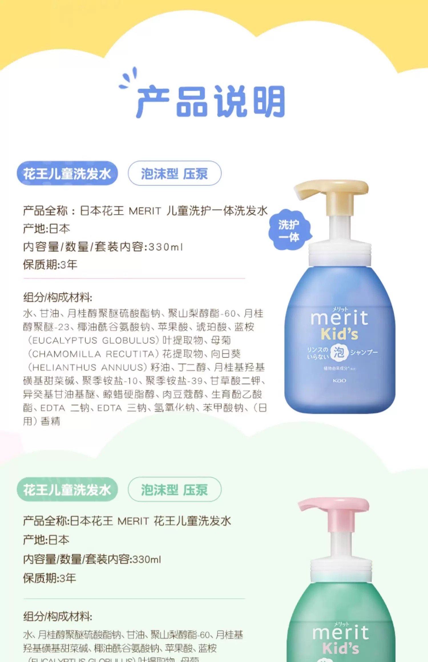 日本KAO花王Merit儿童泡沫洗发水护发素新款 婴幼儿宝宝弱酸性无硅油柔顺女孩男孩成人