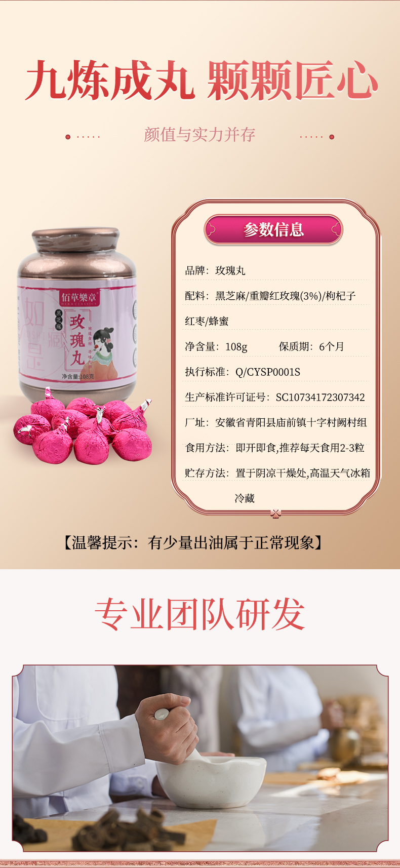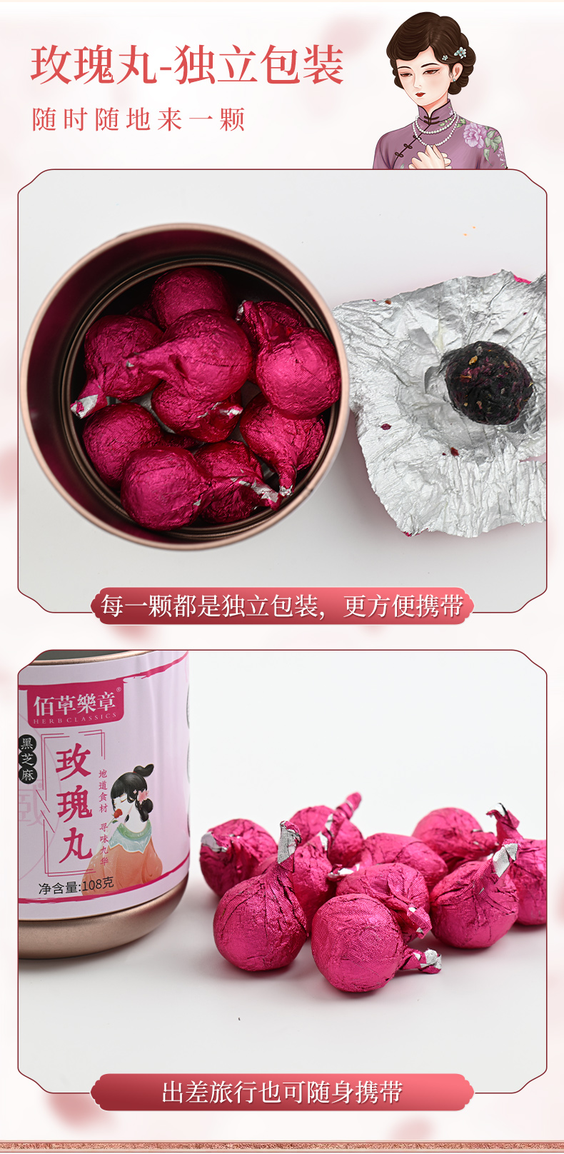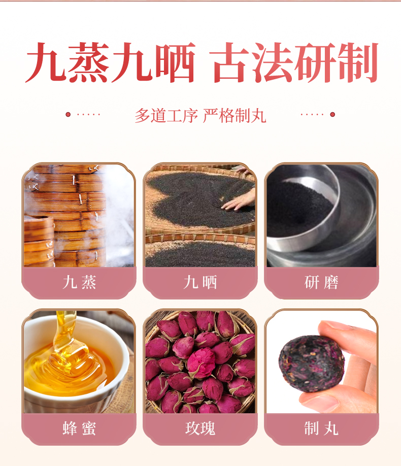 九蒸九晒玫瑰黑芝麻丸玫瑰蜜丸即食零食手工健康糕点