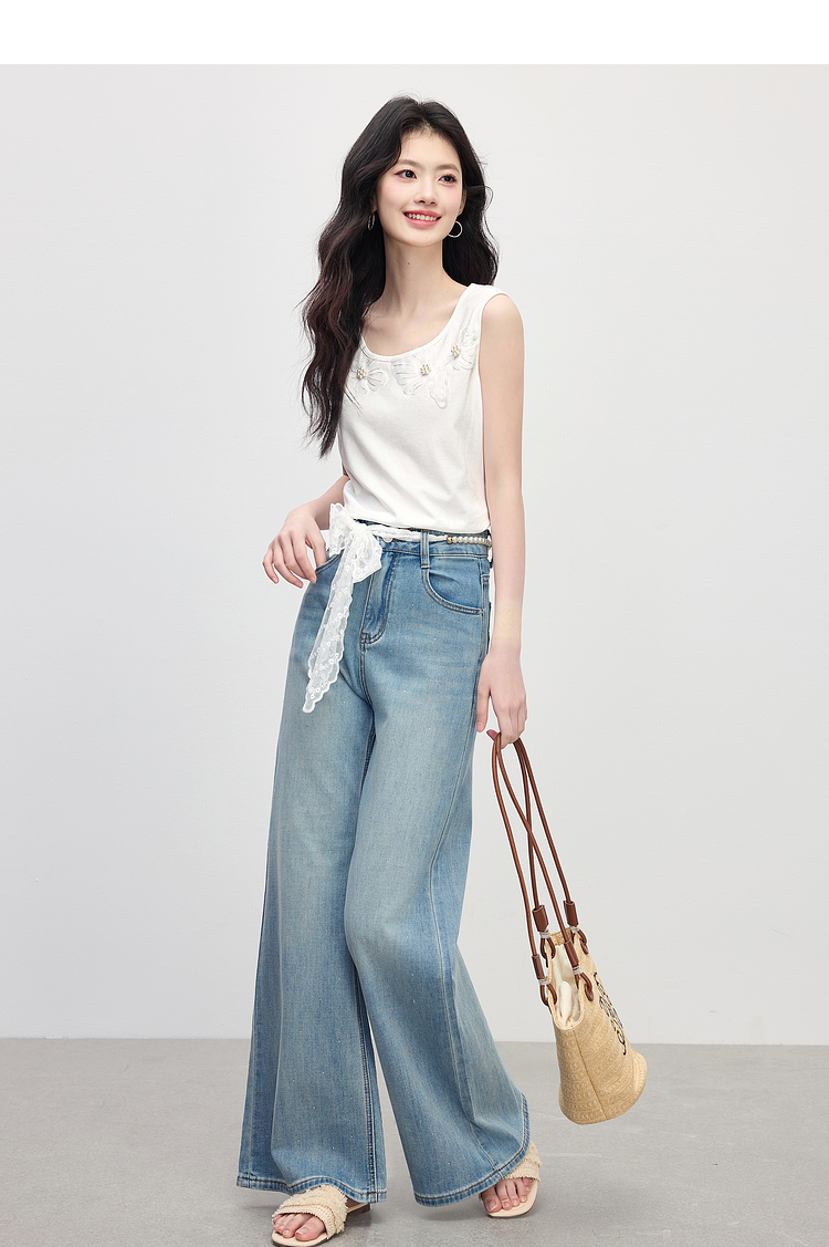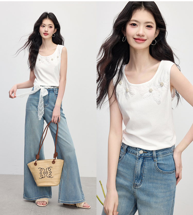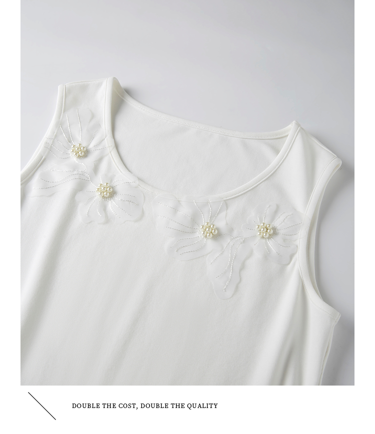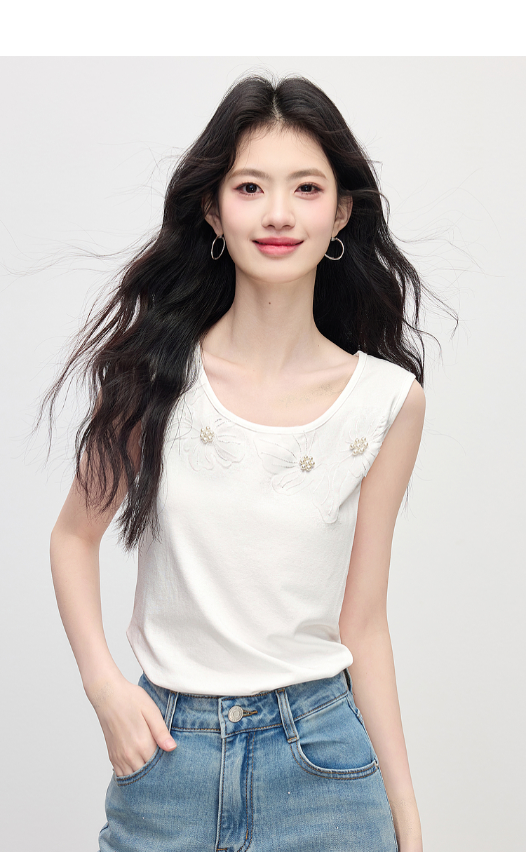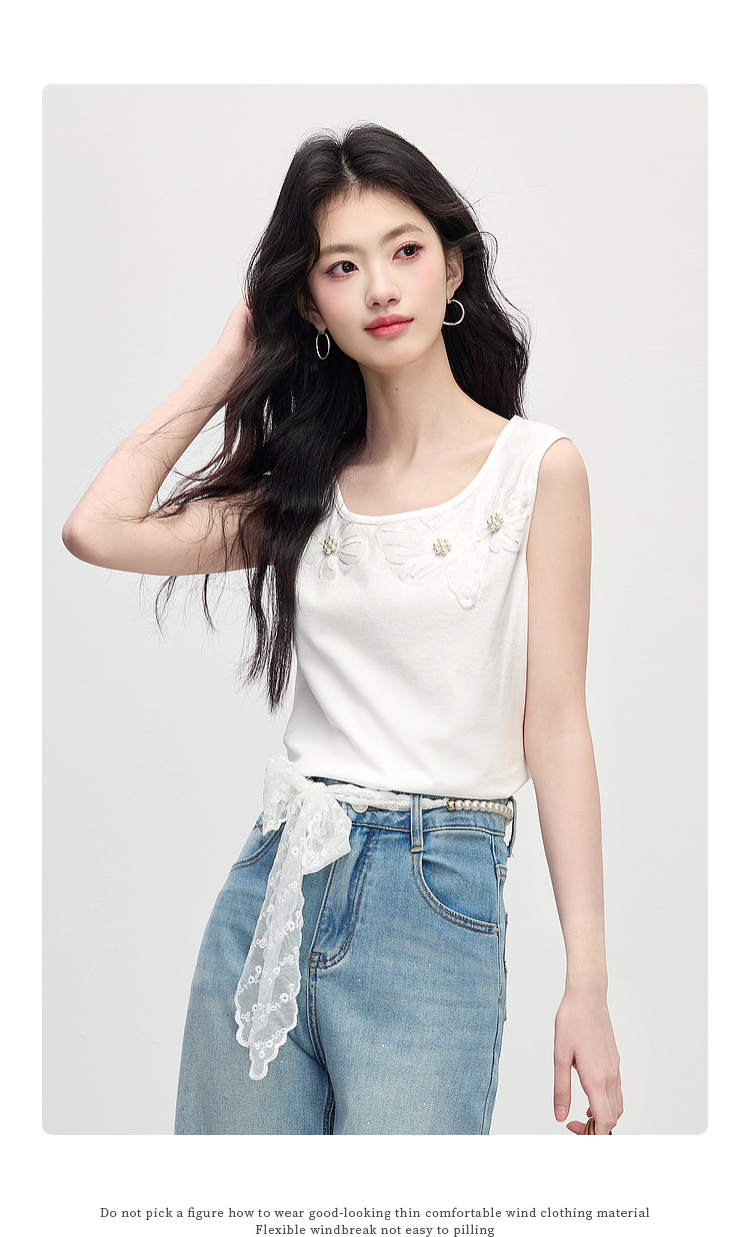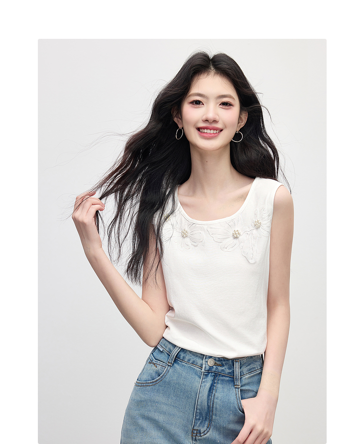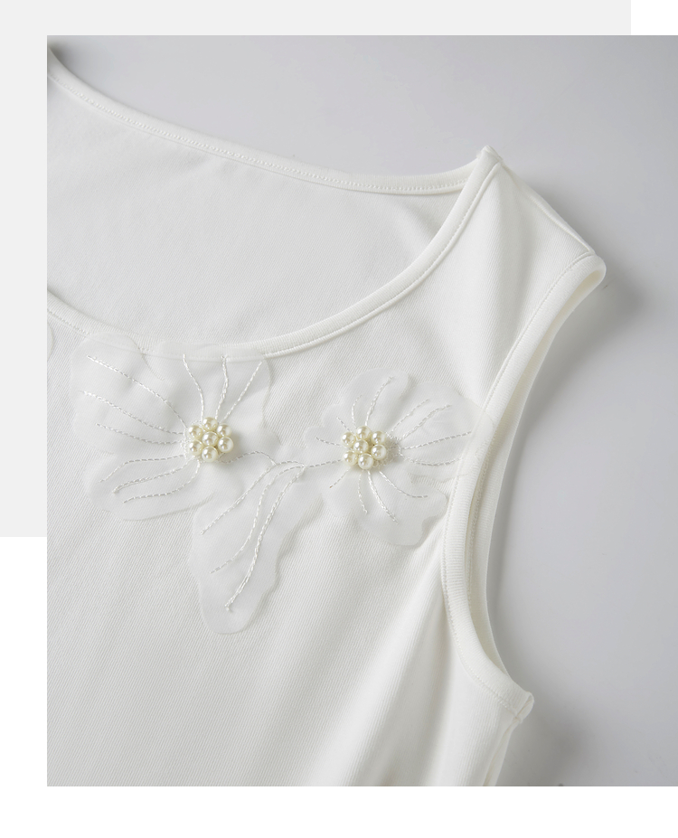 【专属特价】熙世界白色钉珠立体花朵无袖背心外穿绝美短款上衣女2025夏季新款