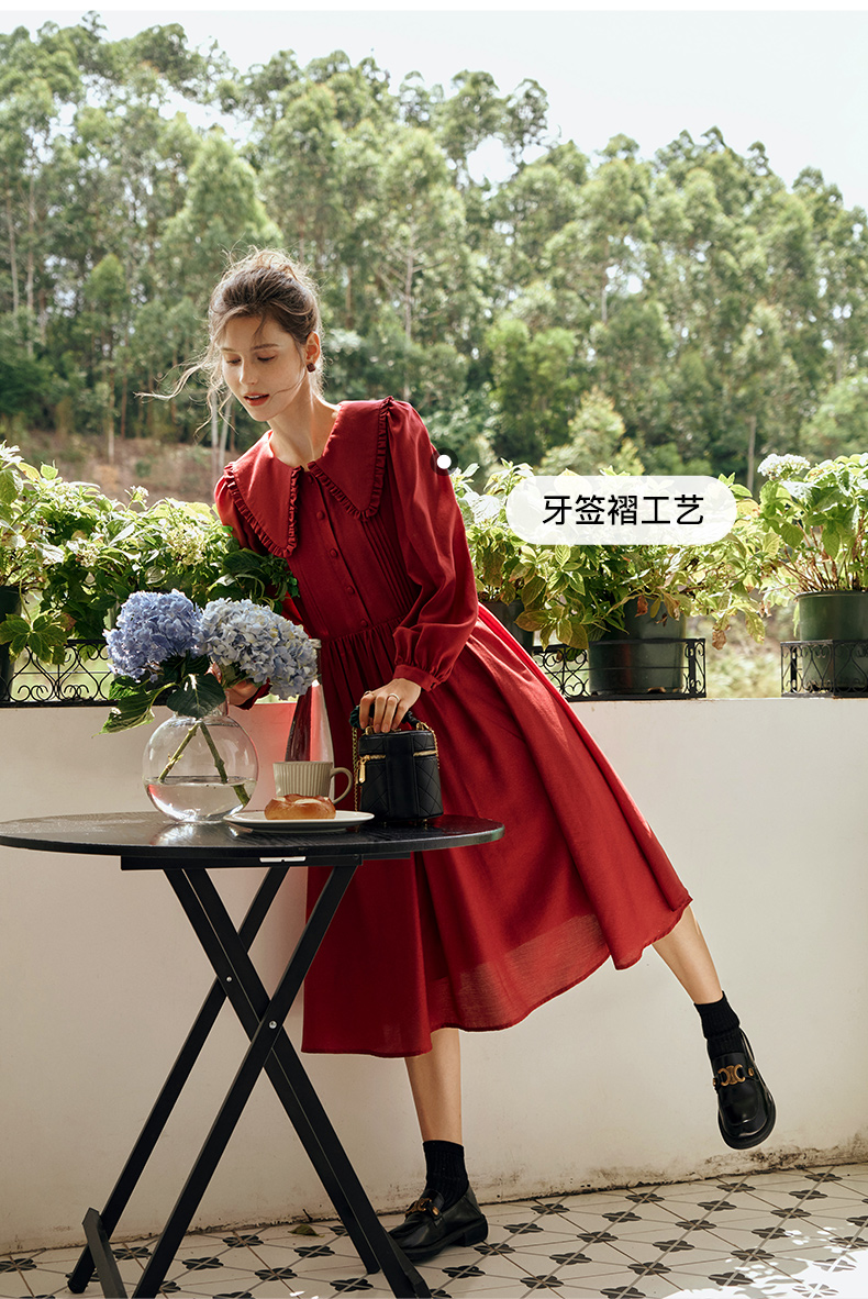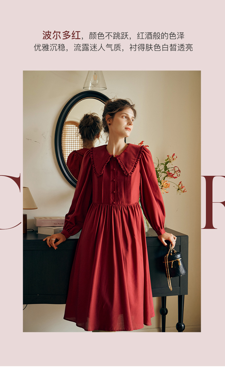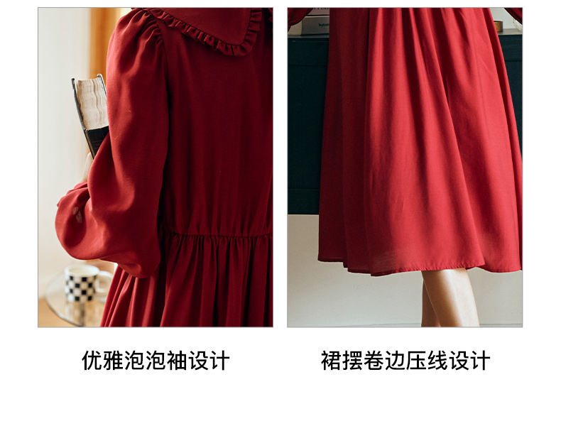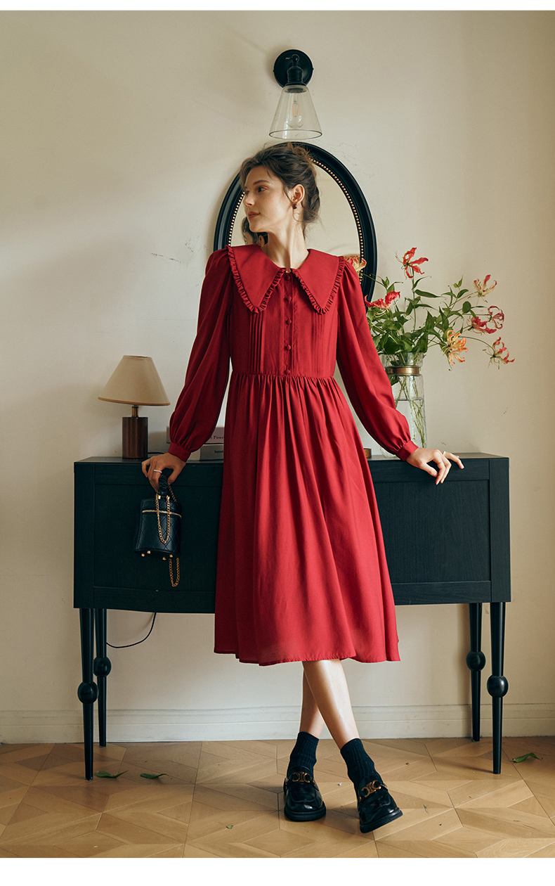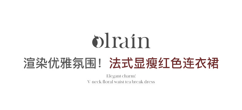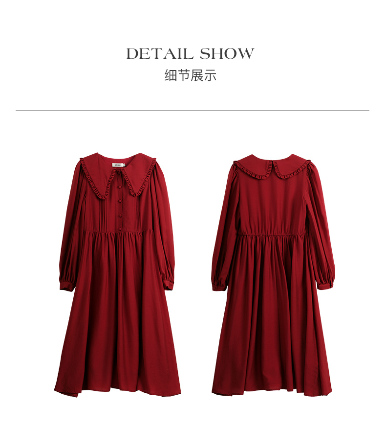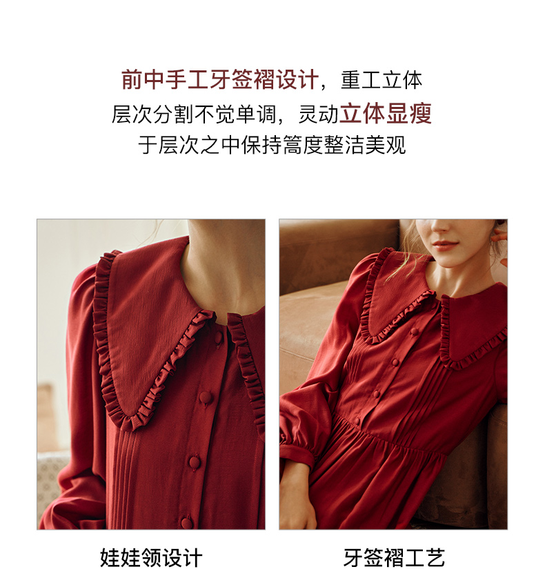 OLrain欧芮儿红色连衣裙女初秋2023年新款收腰法式气质娃娃领裙子