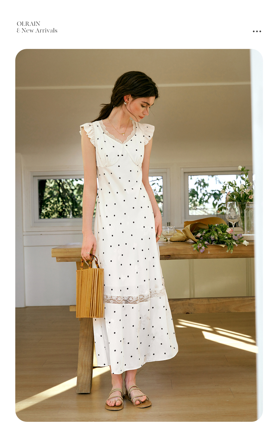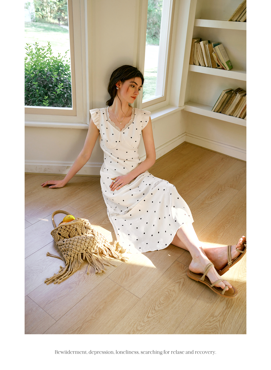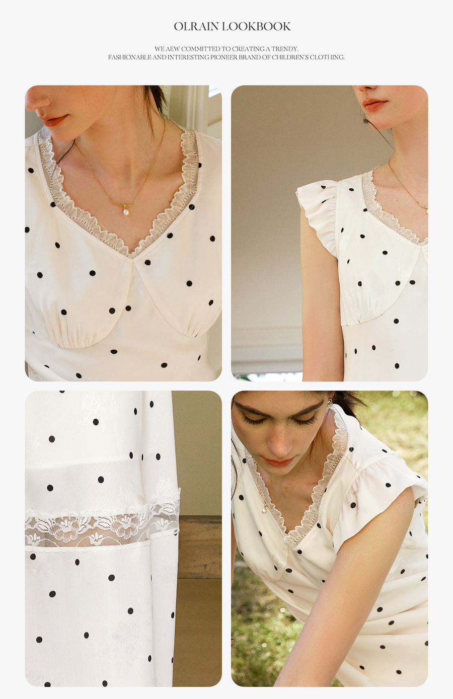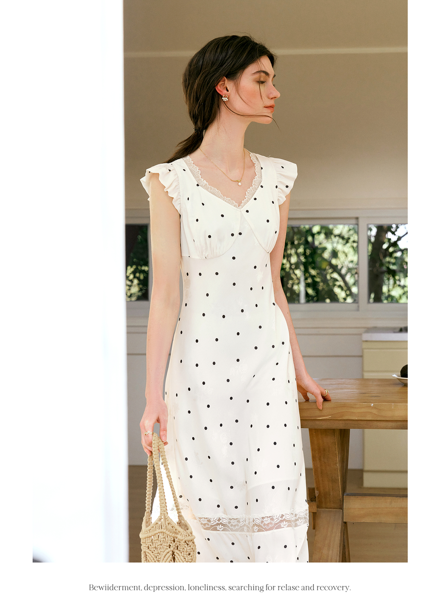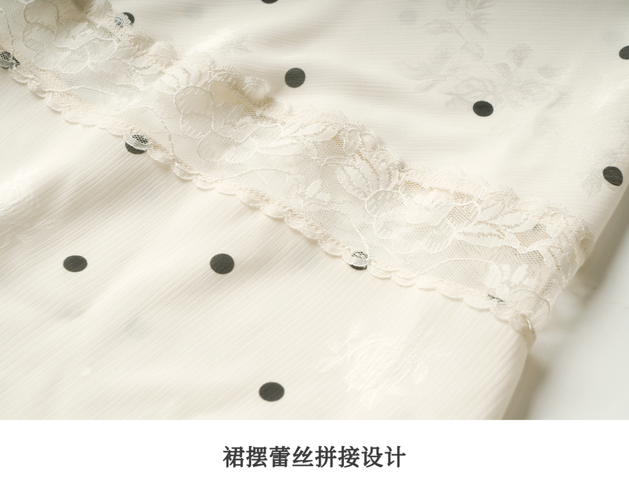 OLrain欧芮儿法式波点连衣裙女夏季2025年新款设计感拼接蕾丝裙子