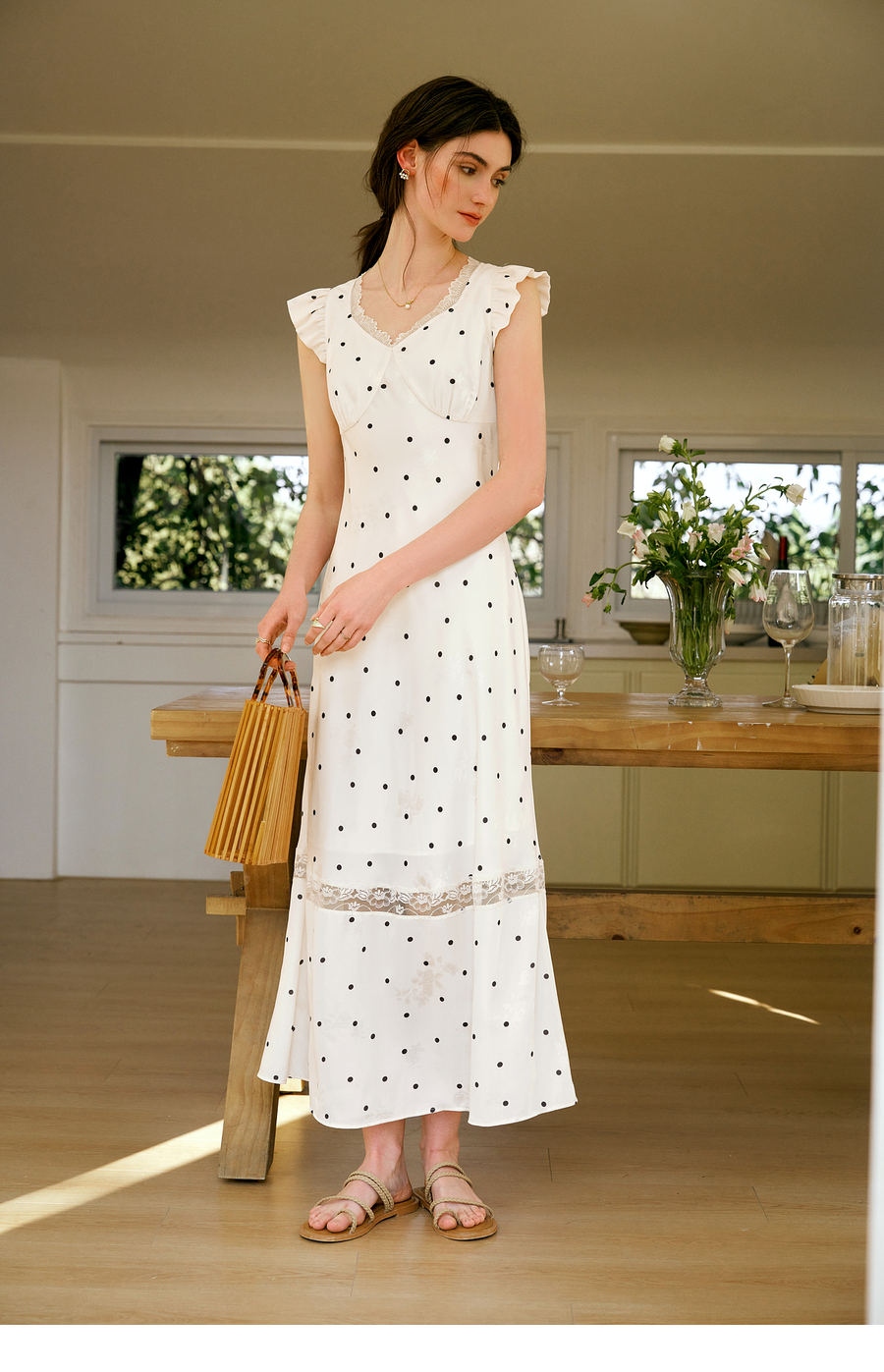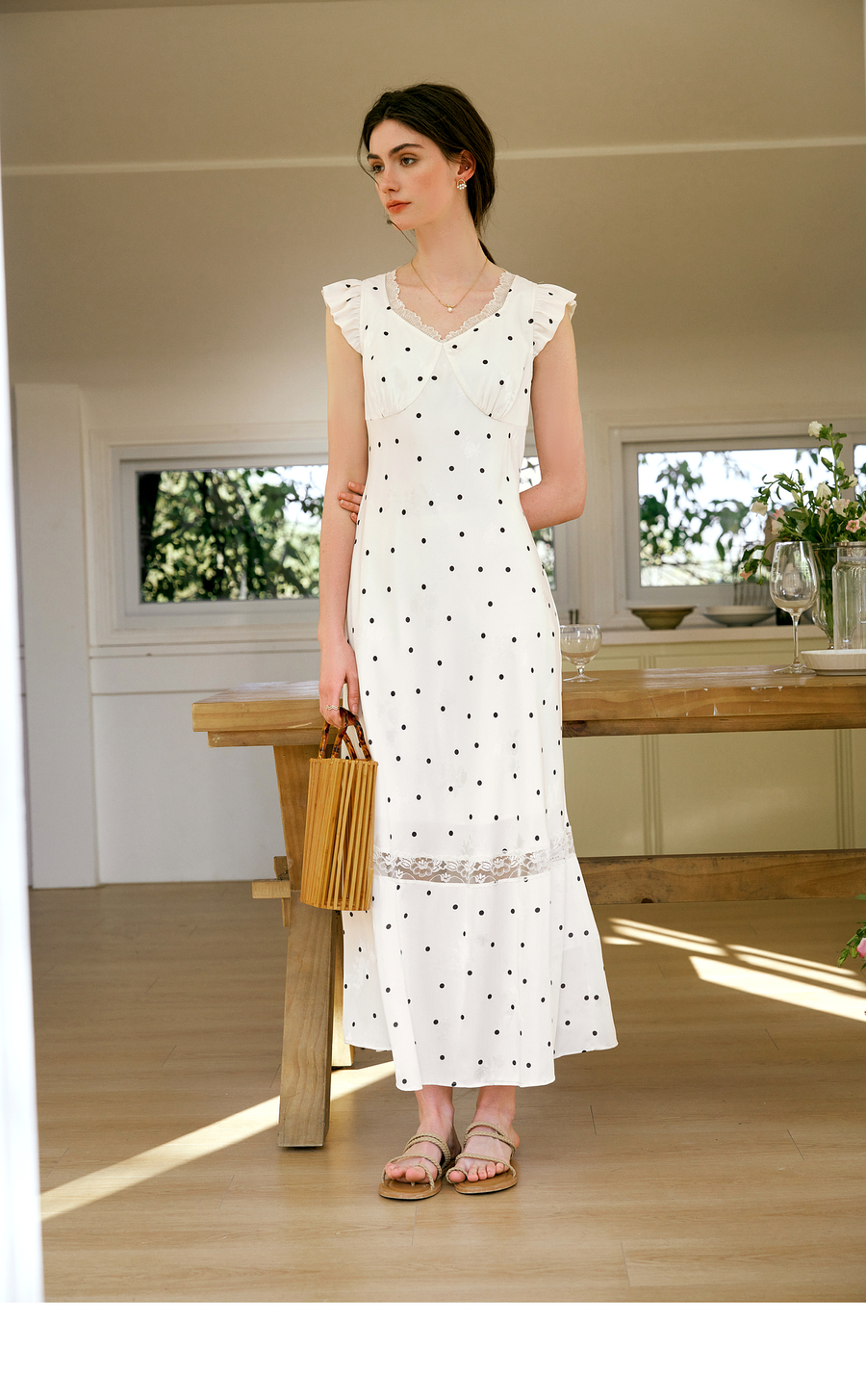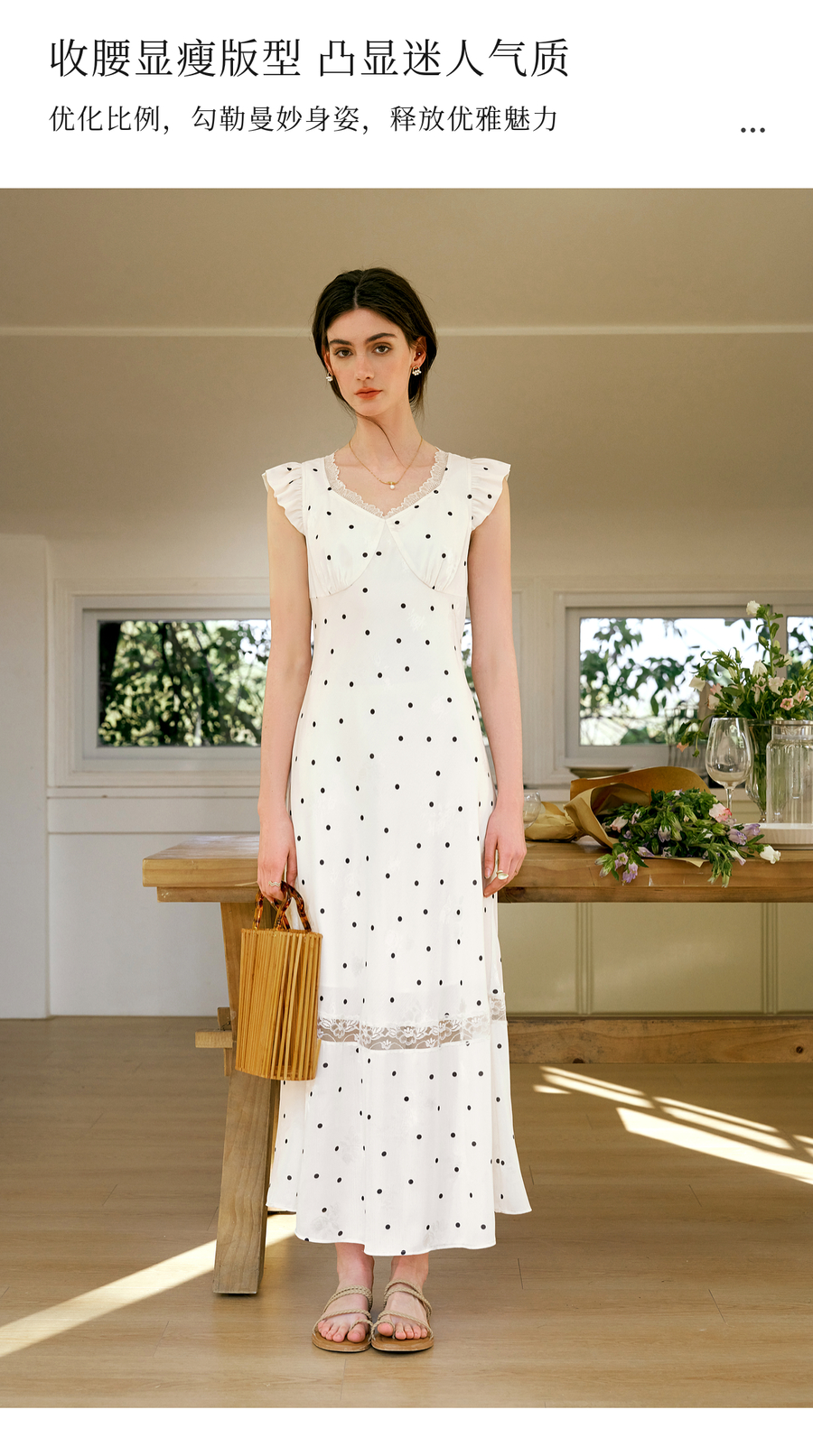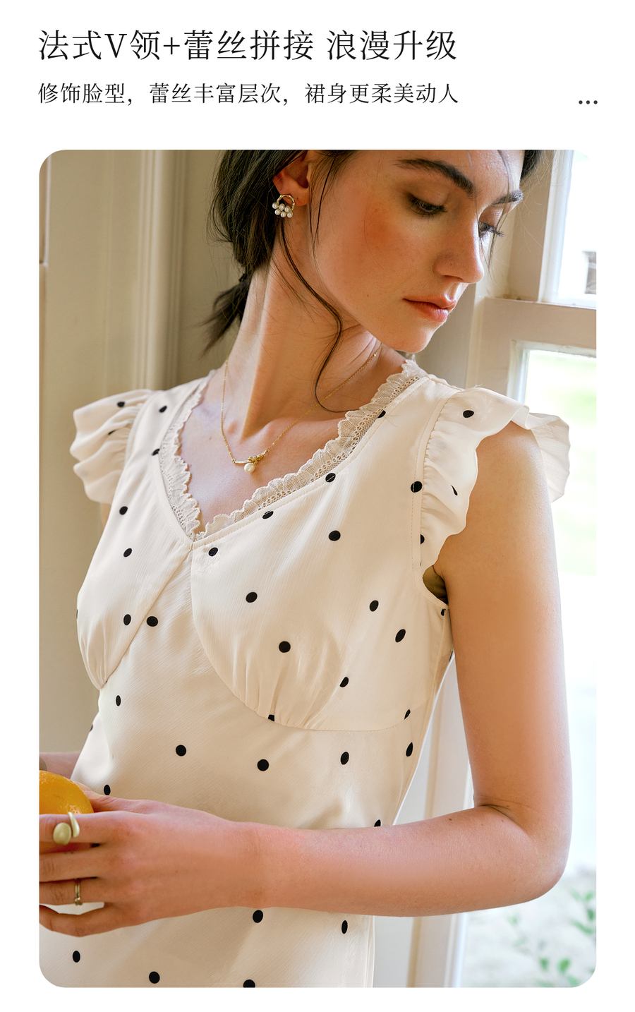 OLrain欧芮儿法式波点连衣裙女夏季2025年新款设计感拼接蕾丝裙子