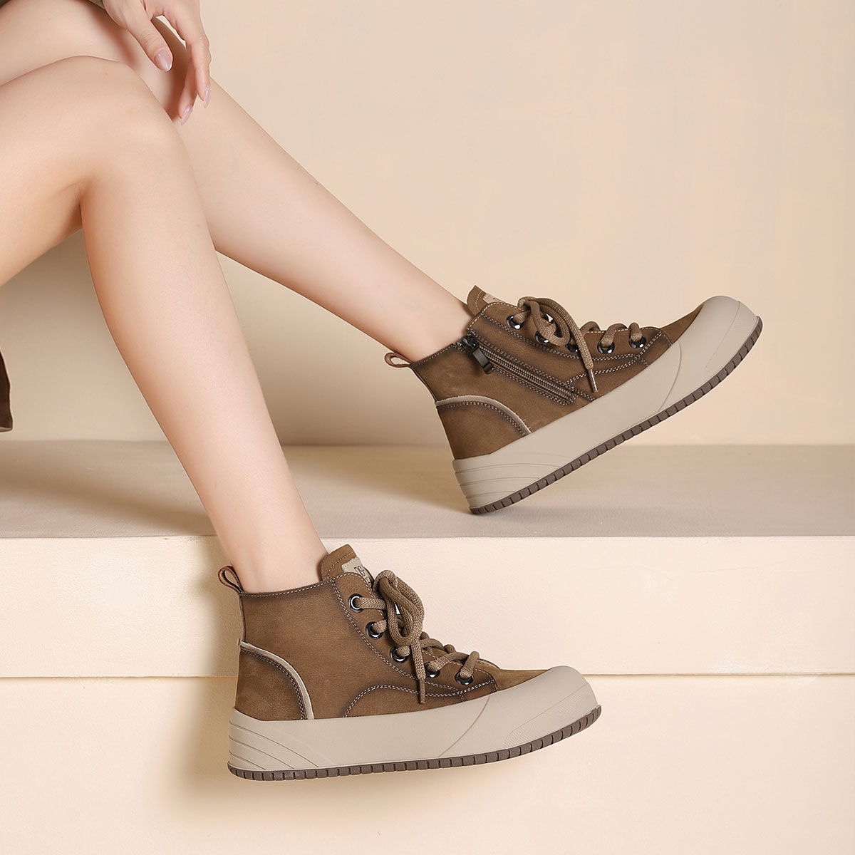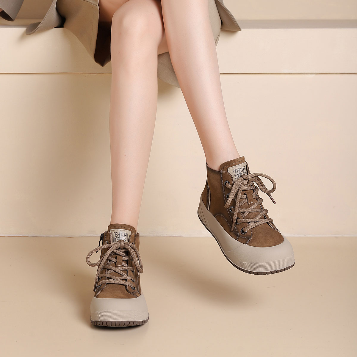 西村名物2024年冬季新款小圆厚底高跟马丁靴T24DS46921