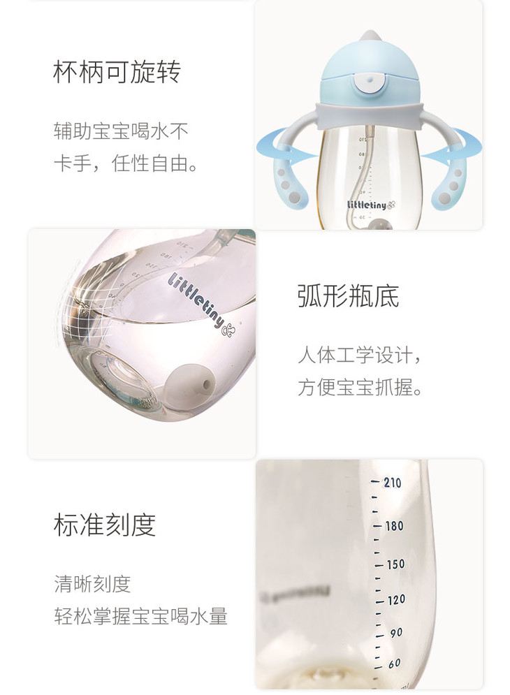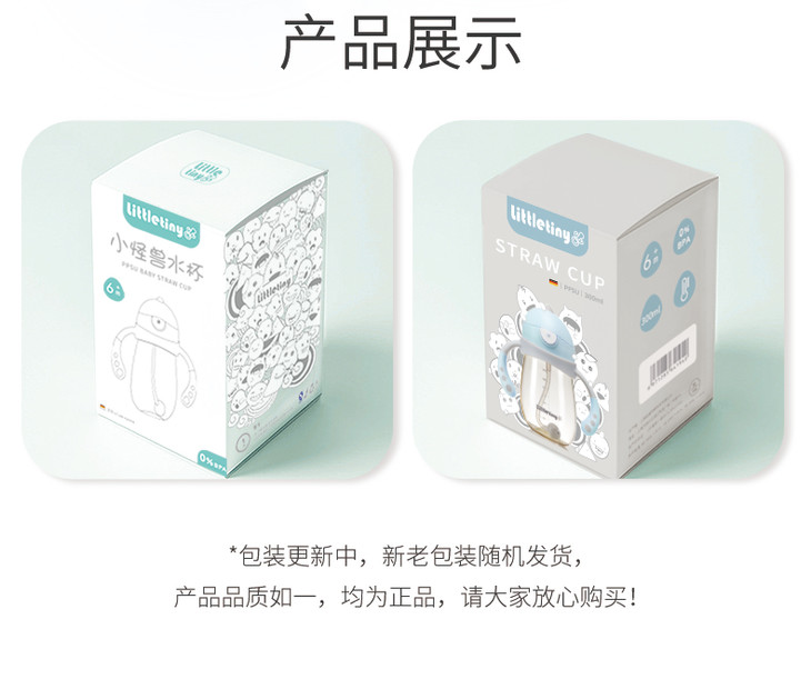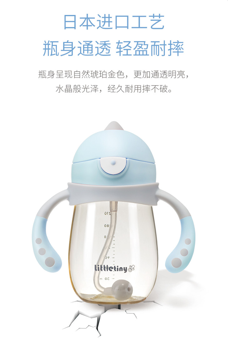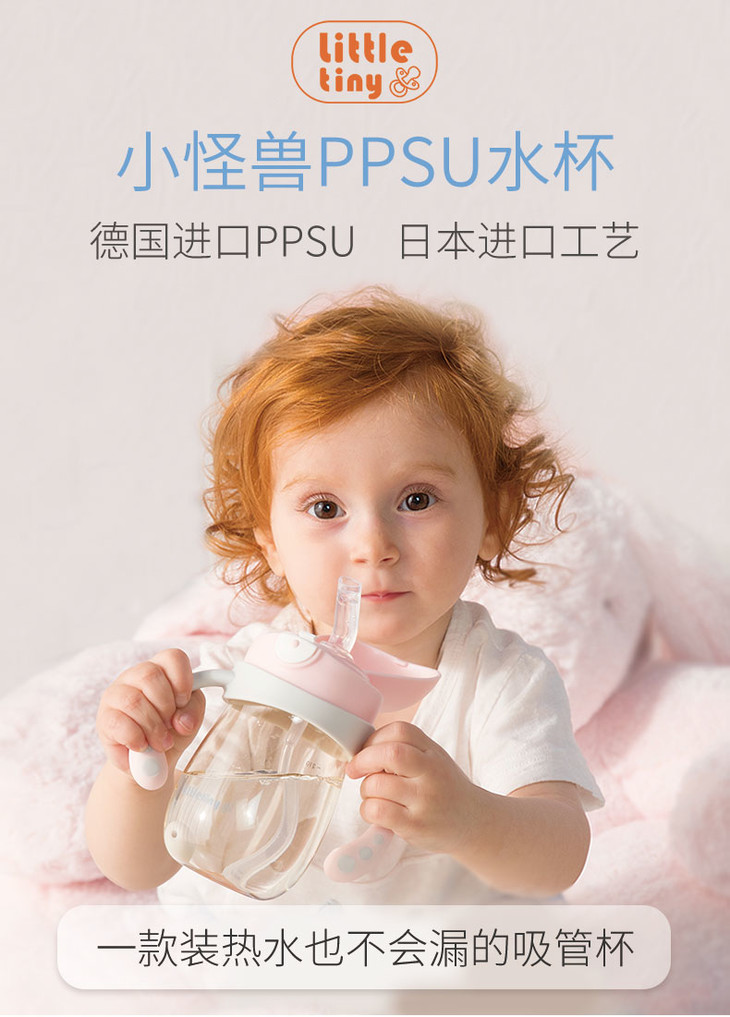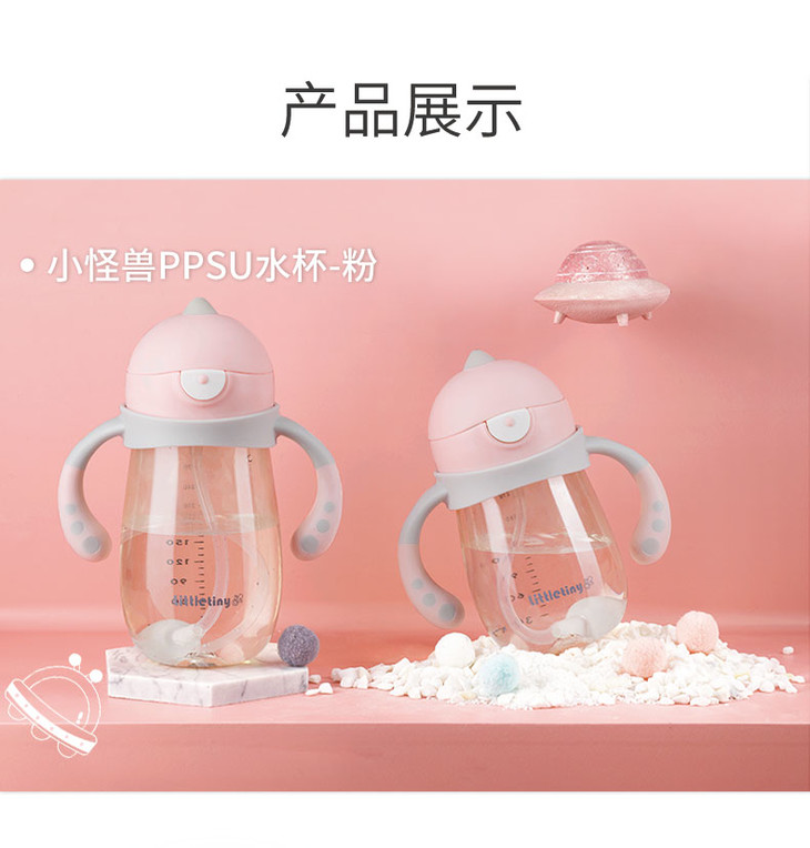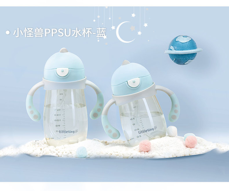 *little tiny小怪兽婴儿吸管杯 ppsu吸管学饮杯儿童水杯带吸管手柄
