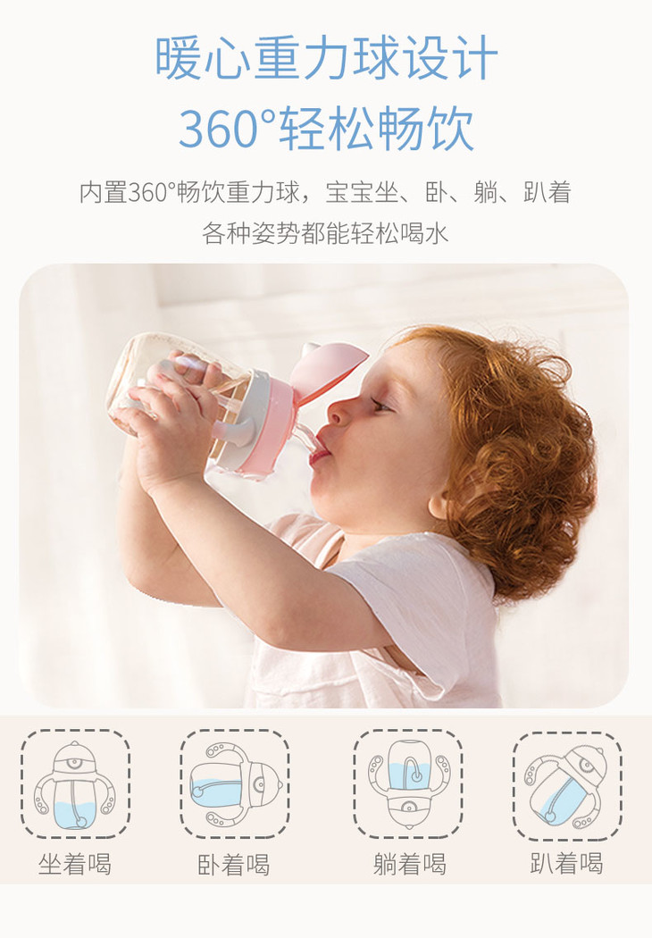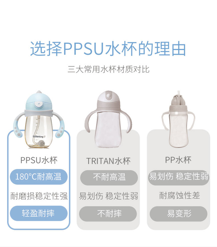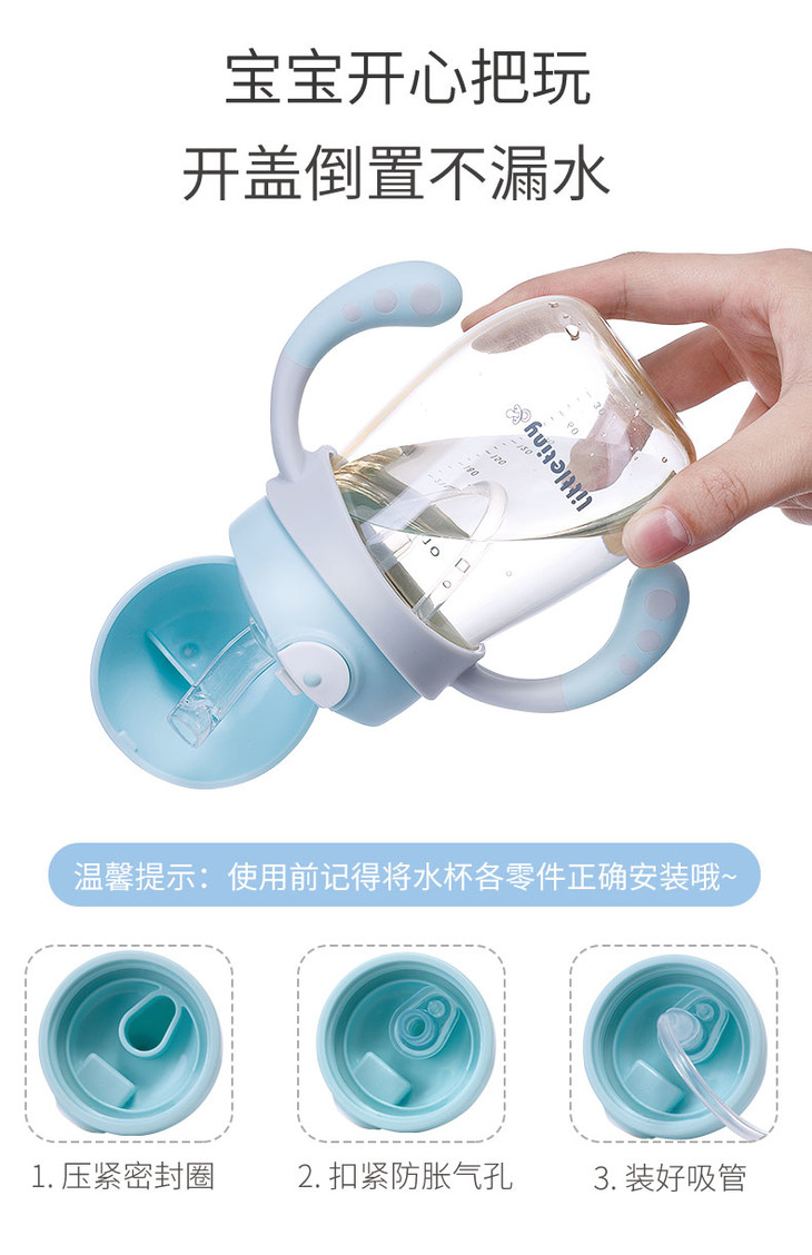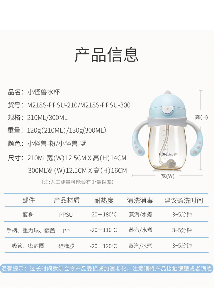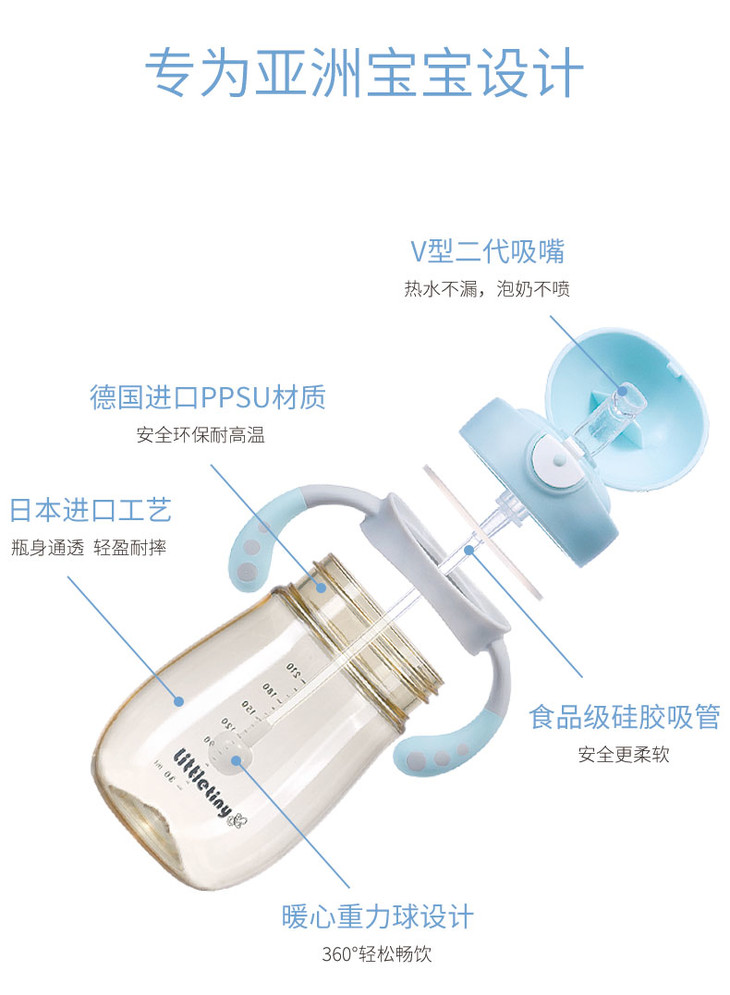*little tiny小怪兽婴儿吸管杯 ppsu吸管学饮杯儿童水杯带吸管手柄