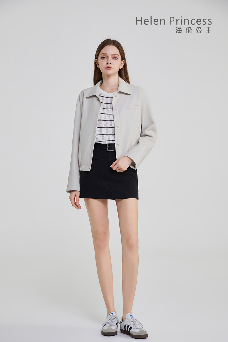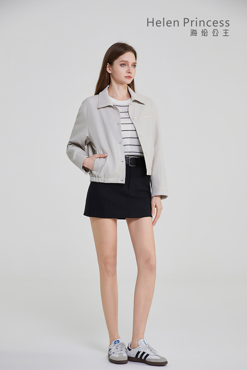 经典翻领设计休闲率性。短款衣身调节身材比例,更加显高显瘦。下摆收腰,防风保暖。整体简约大气风格,百搭时髦,尽显摩登风范。