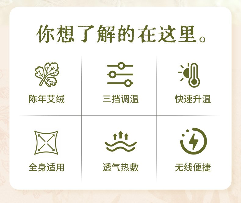 内胆精选3年艾绒、红花和玫瑰等天然成分,精心配比而成;