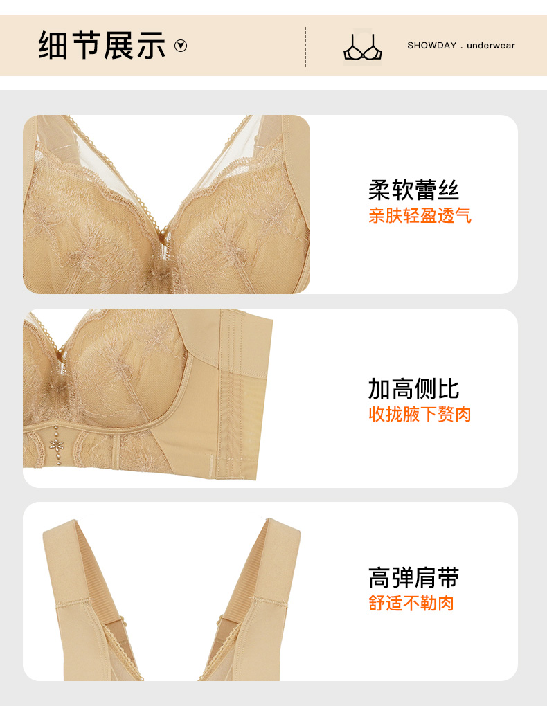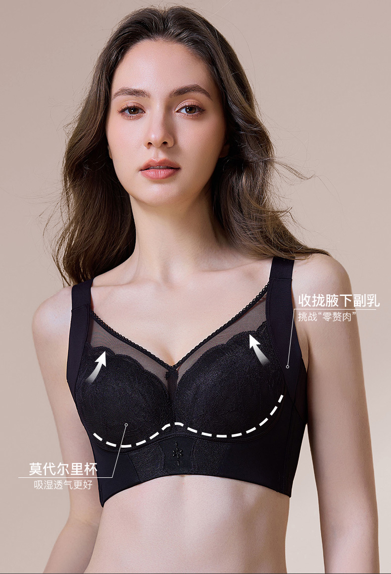 蔓纱珠影拼棉杯文胸