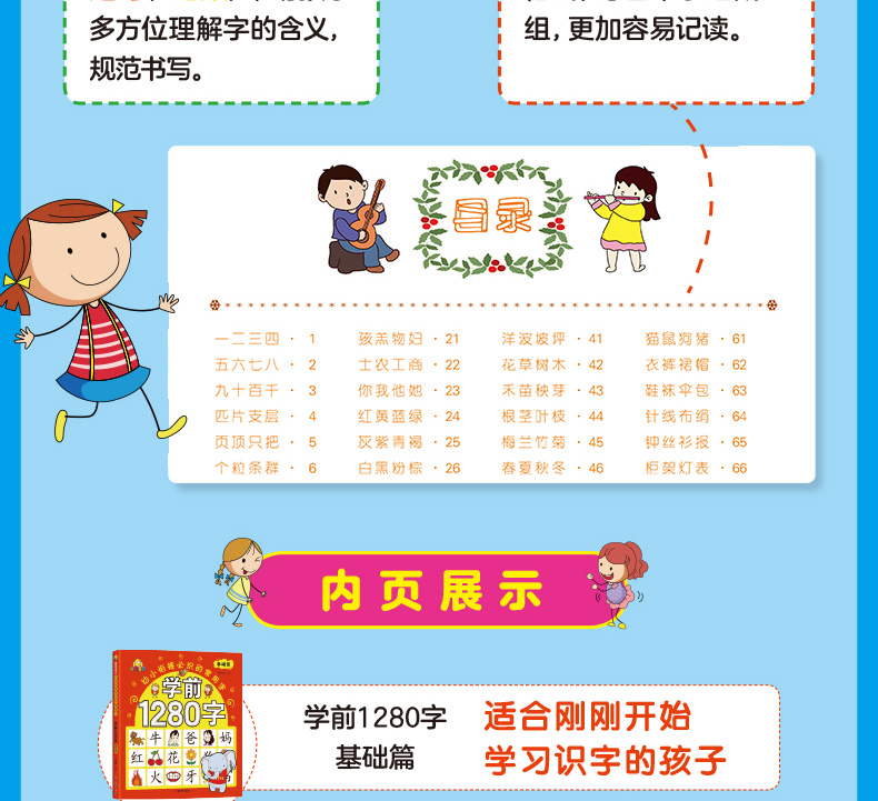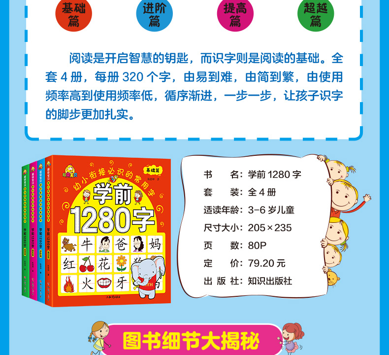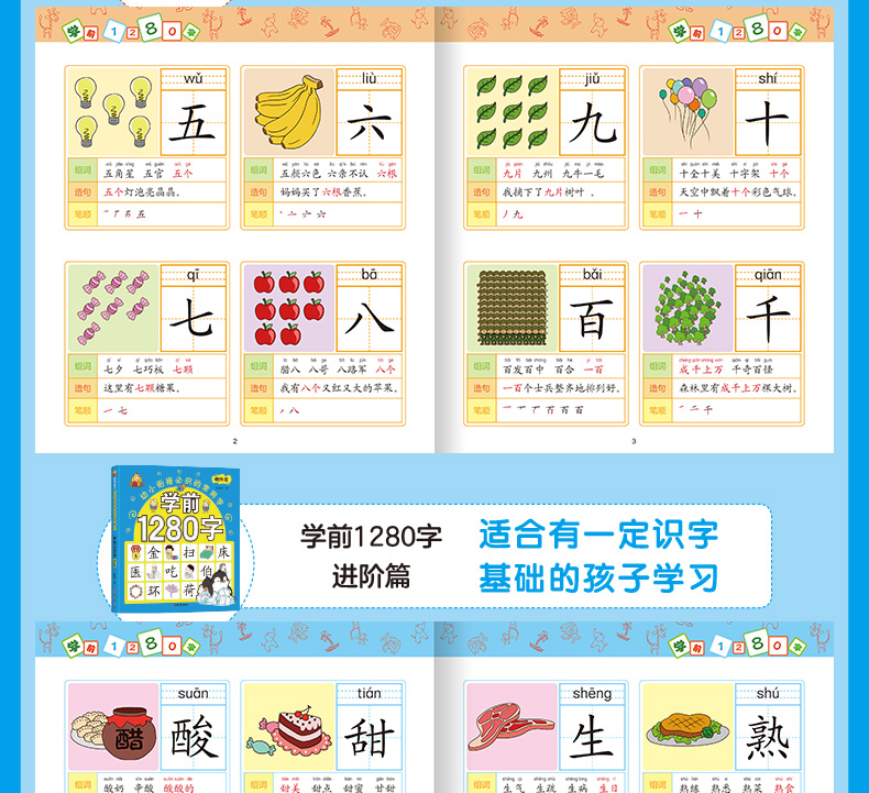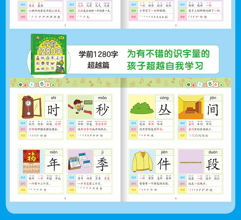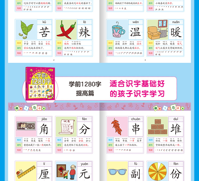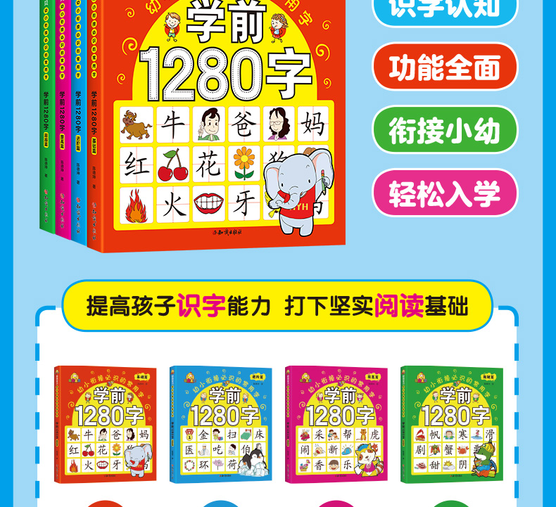 学前1280字共4册识字卡片 3-6岁儿童基础识字 学前幼儿阅读与识字书5-6岁象形字 学龄前儿童 全脑记忆幼小衔接教材大班升一年级