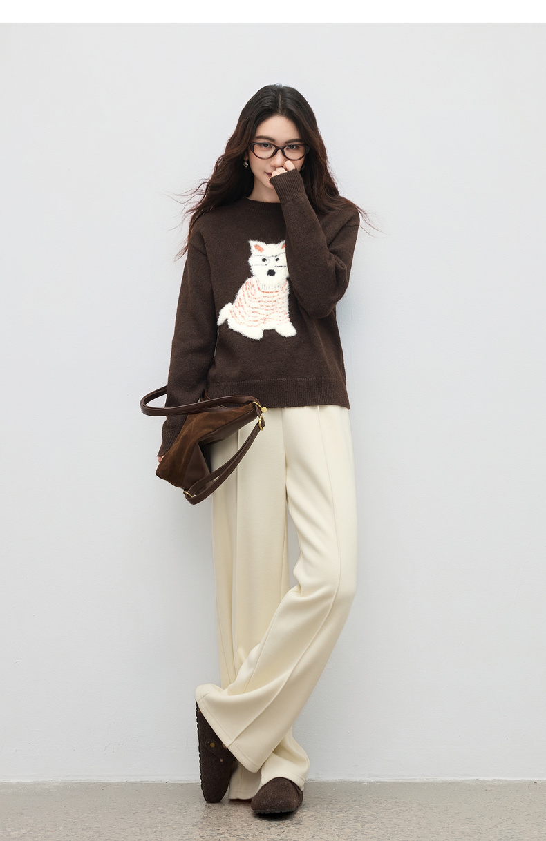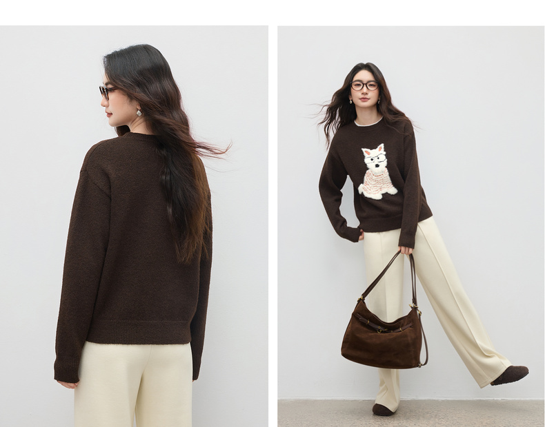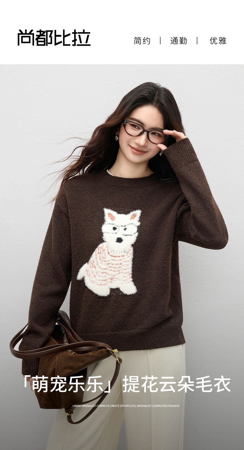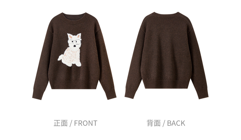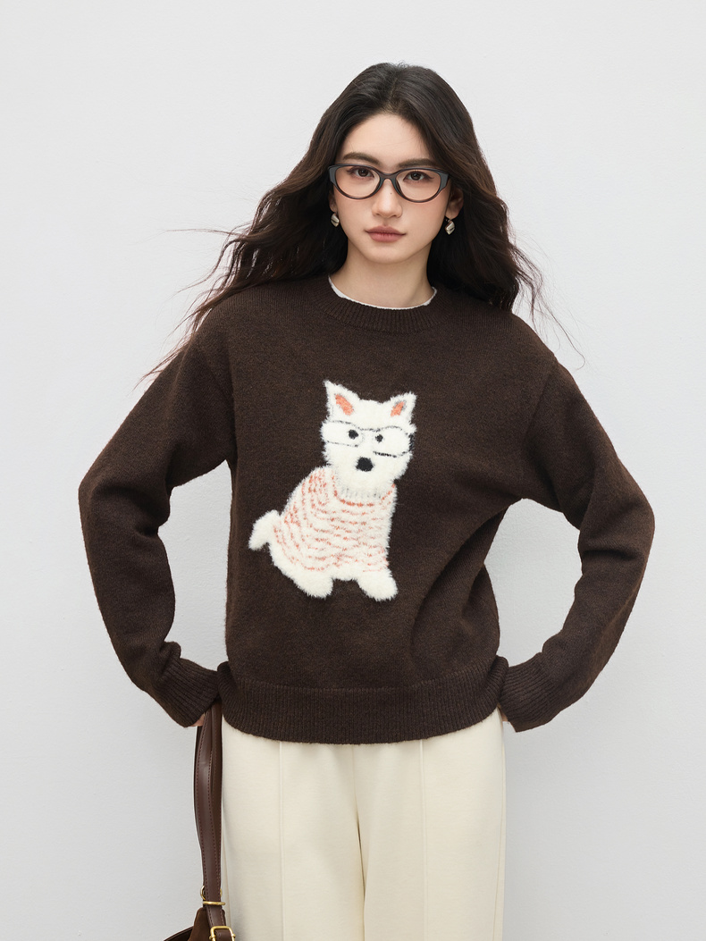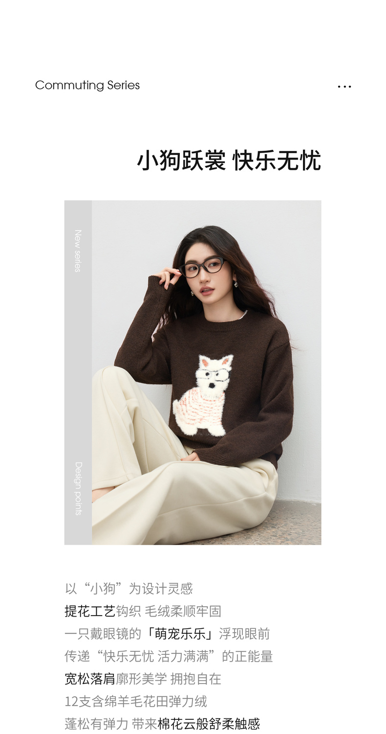 【内购】【萌宠乐乐】简约圆领撞色小狗提花图案显瘦含绵羊毛花田绒毛衣-W54EE4236