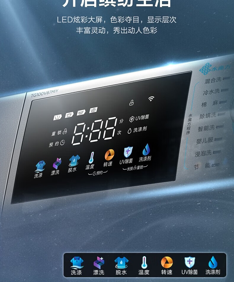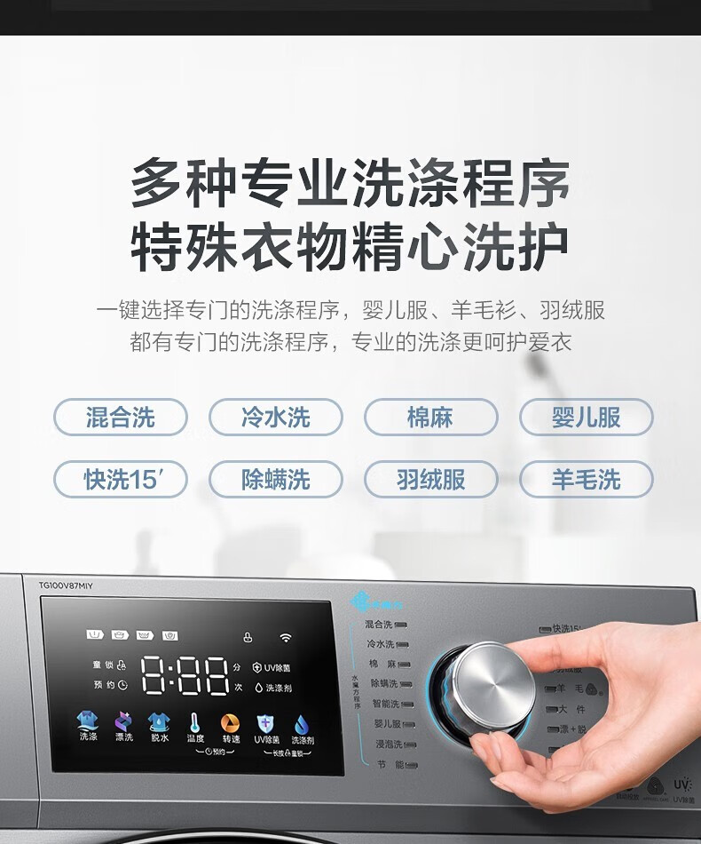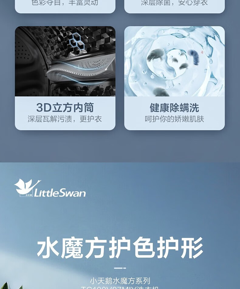 小天鹅 TG100V87MIY 滚筒洗衣机全自动10公斤 水魔方冷水洗 防缠绕 护型护色