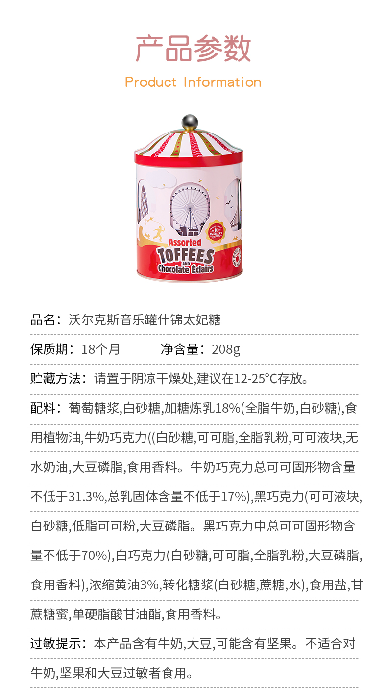 沃尔克斯音乐罐什锦太妃糖208g/060851 不止是太妃糖更是音乐盒