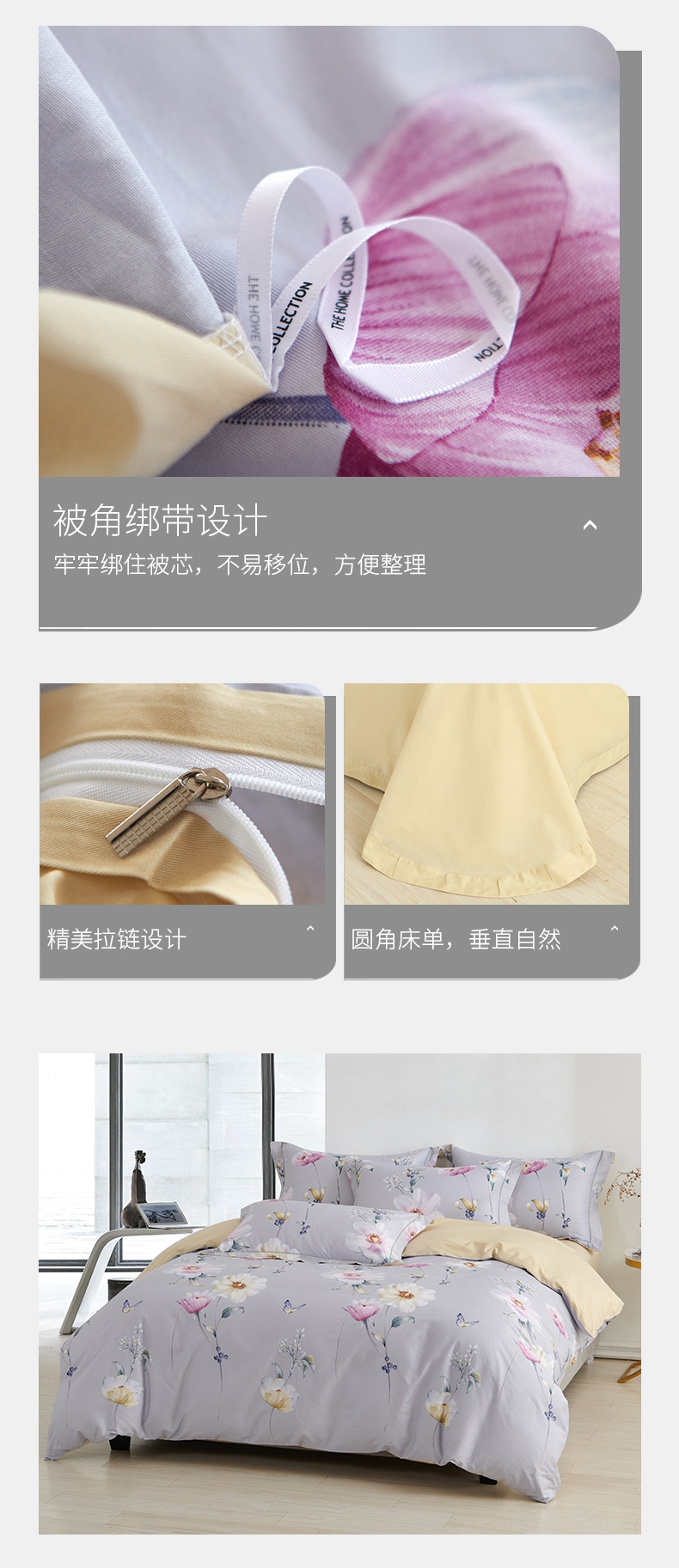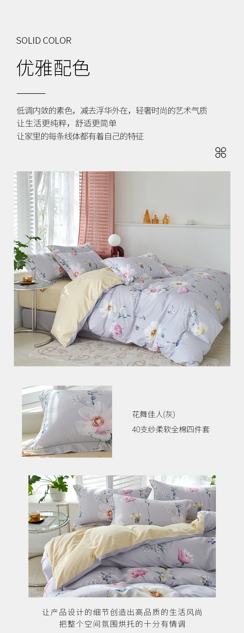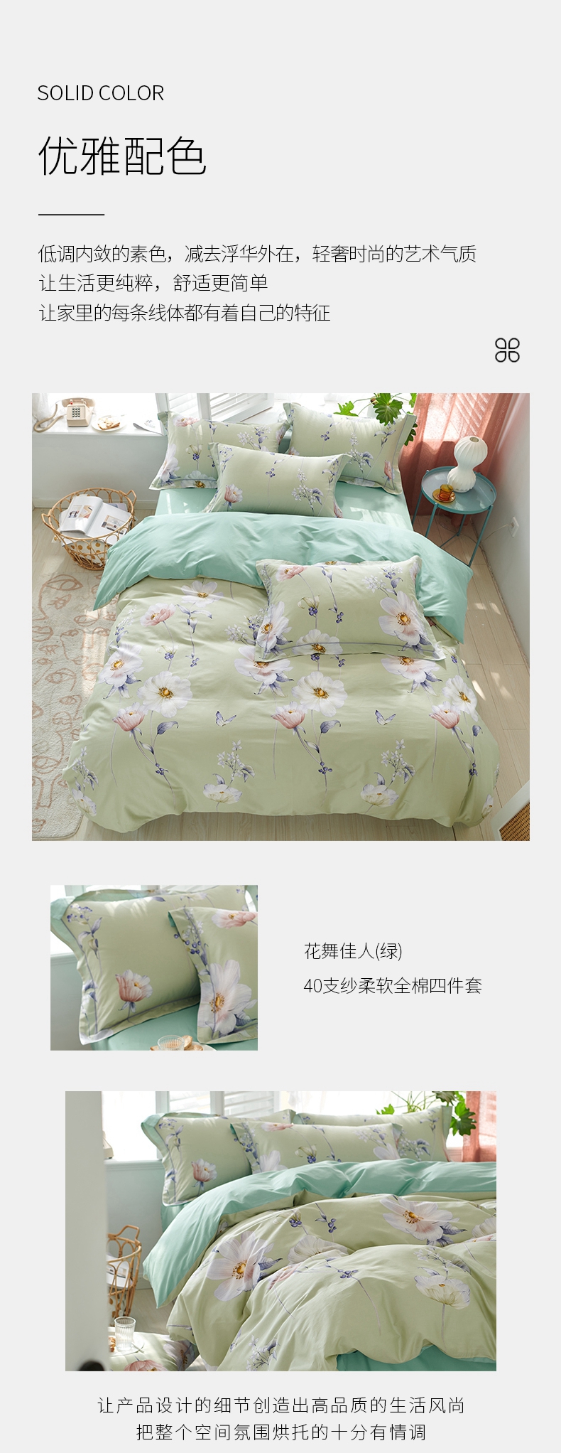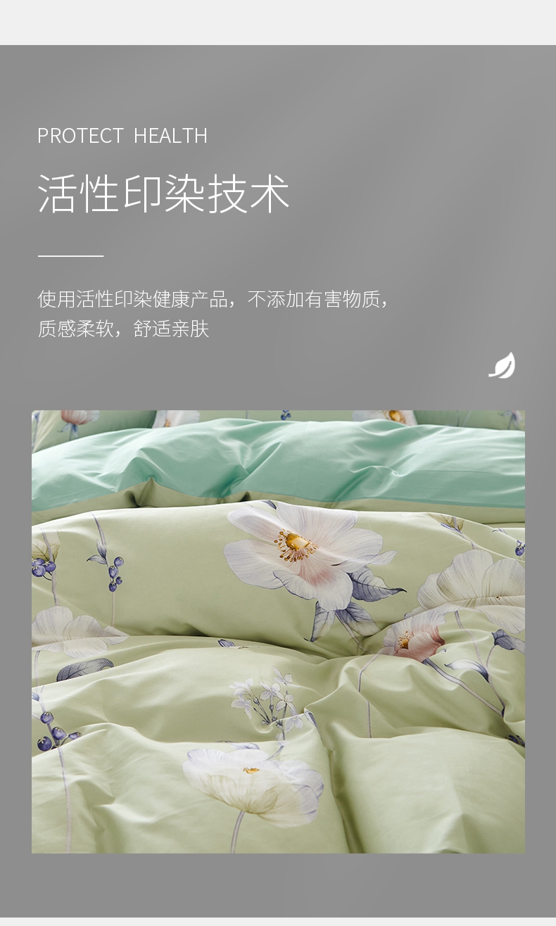 春夏新品40支纱柔软全棉四件套 清新风被套床单4件套1.5\1.8米床-花舞佳人