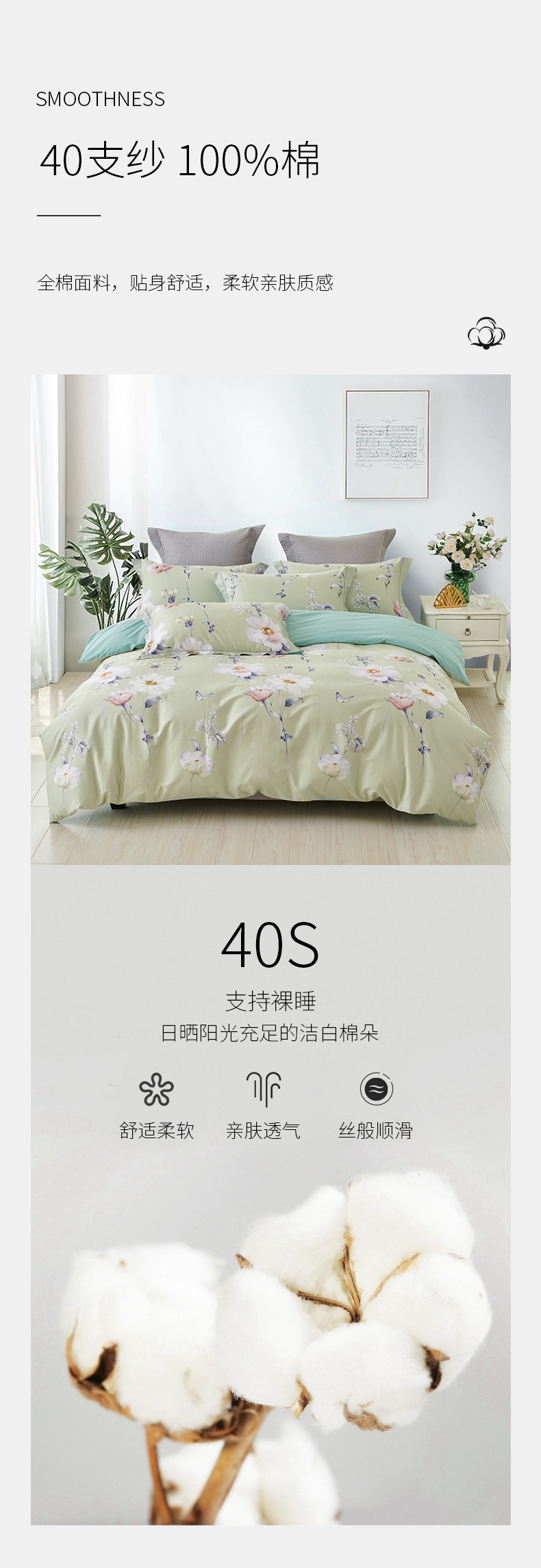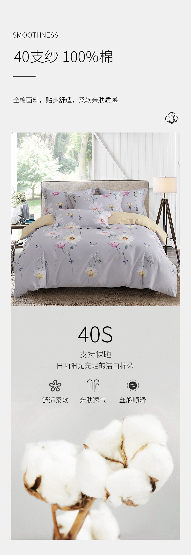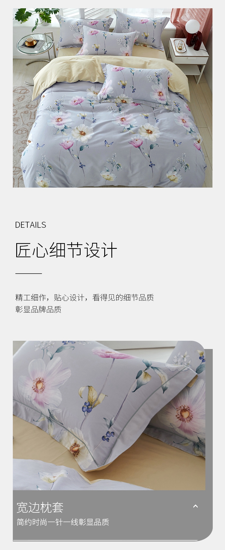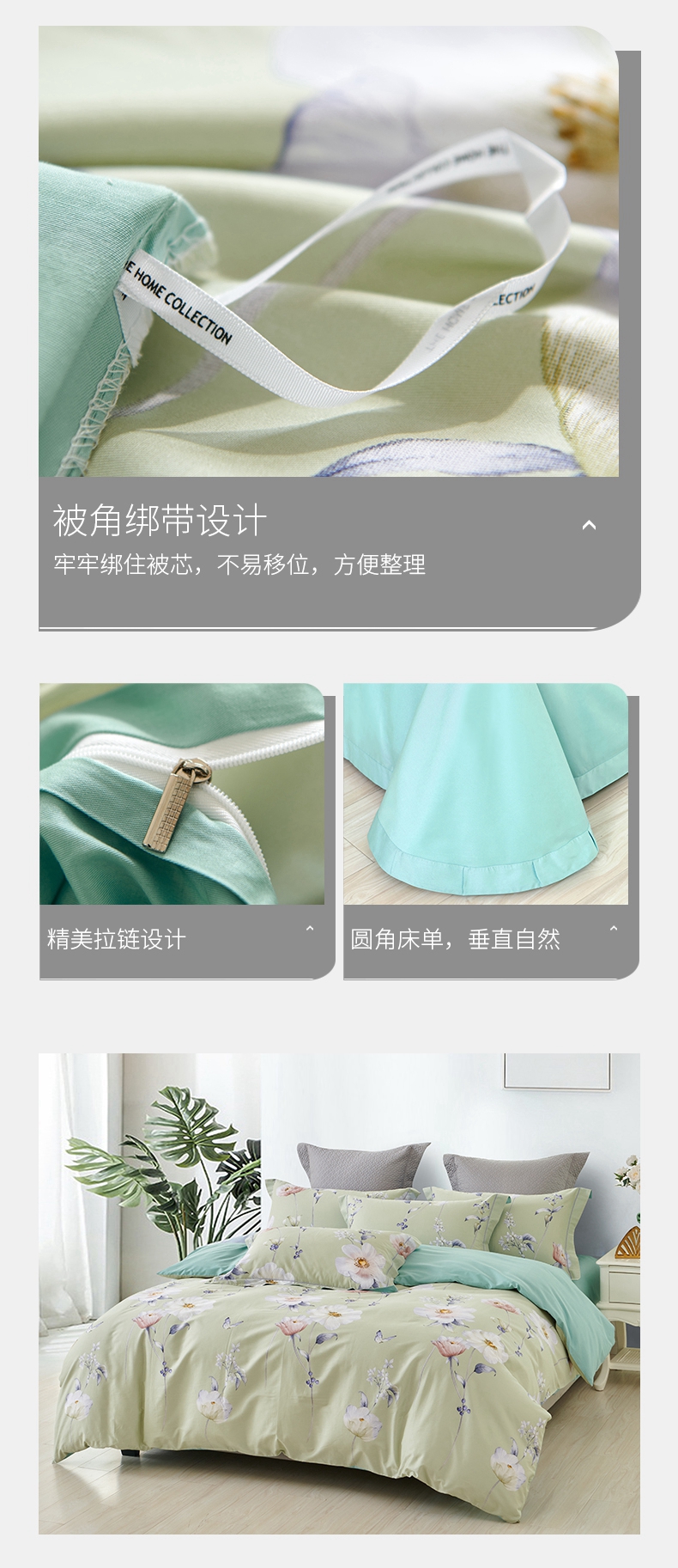 春夏新品40支纱柔软全棉四件套 清新风被套床单4件套1.5\1.8米床-花舞佳人