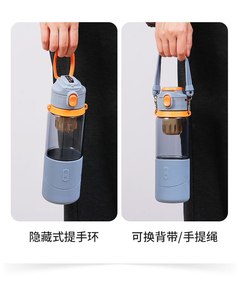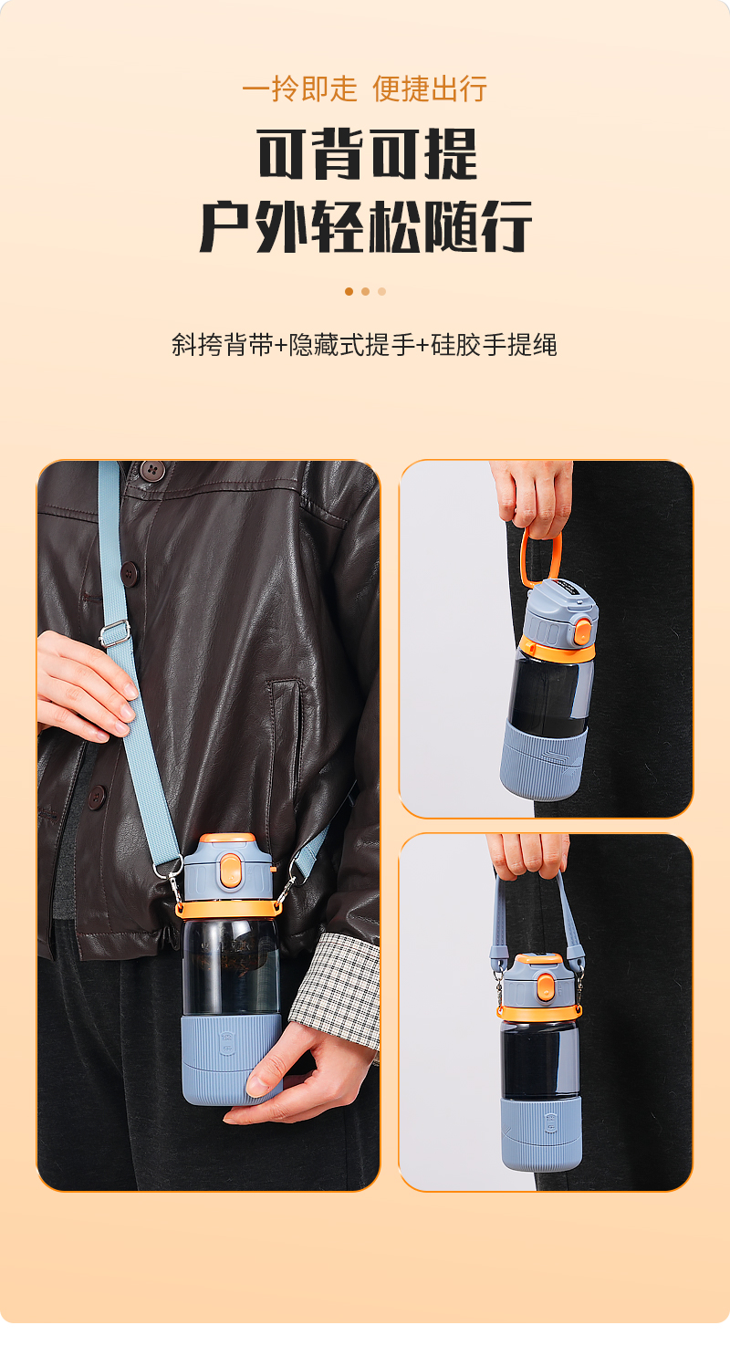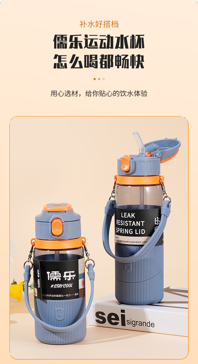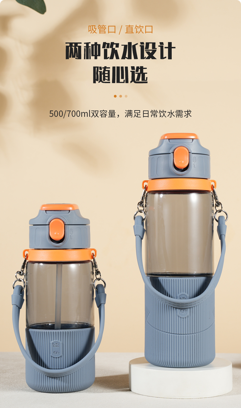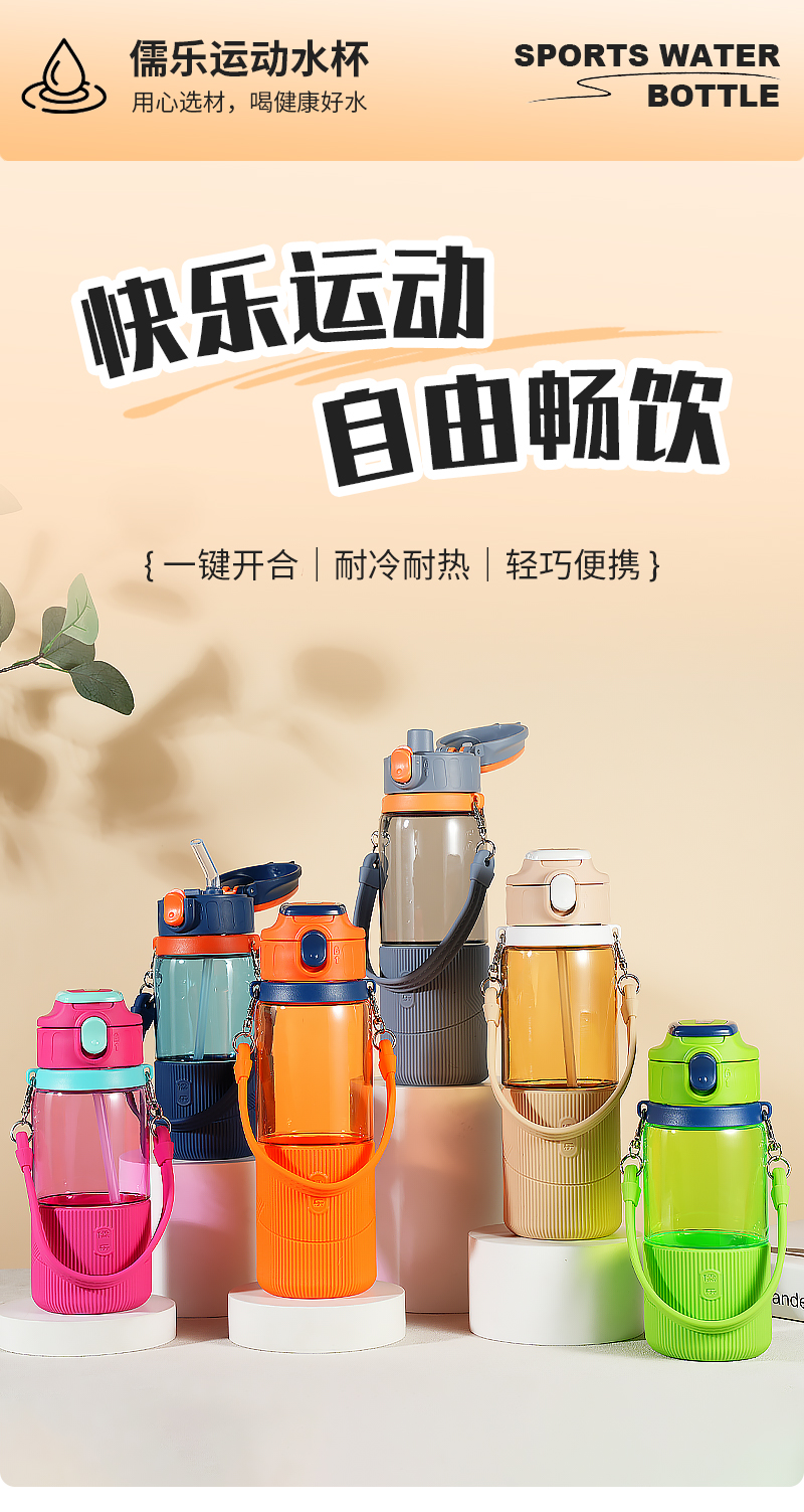 儒乐 运动水杯,手提绳便携直饮杯背带户外大容量随行吸管杯