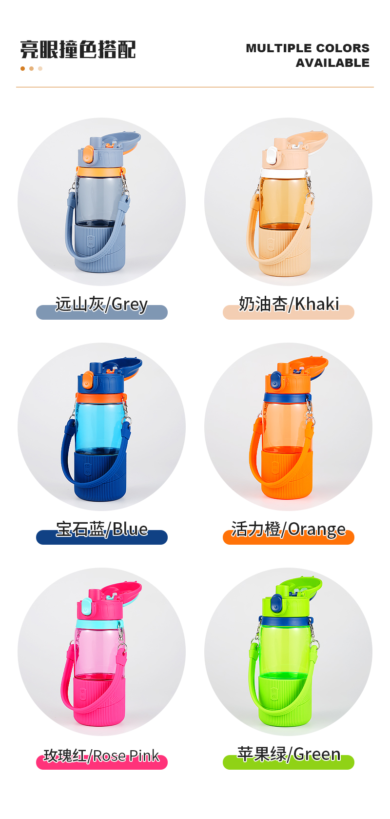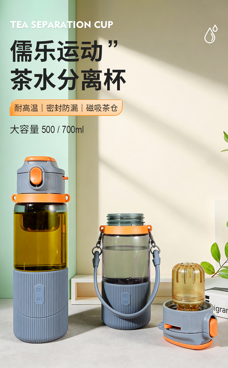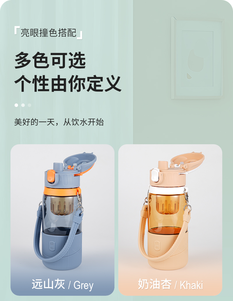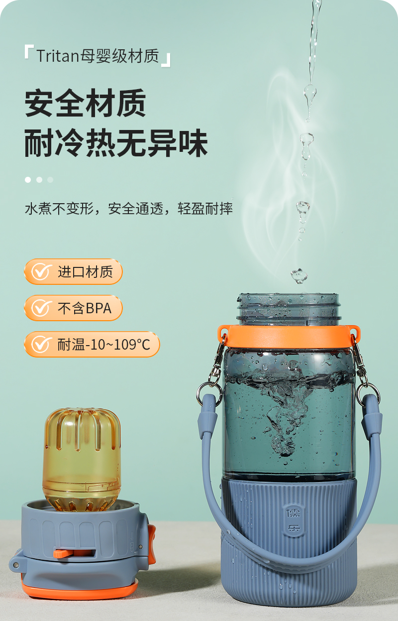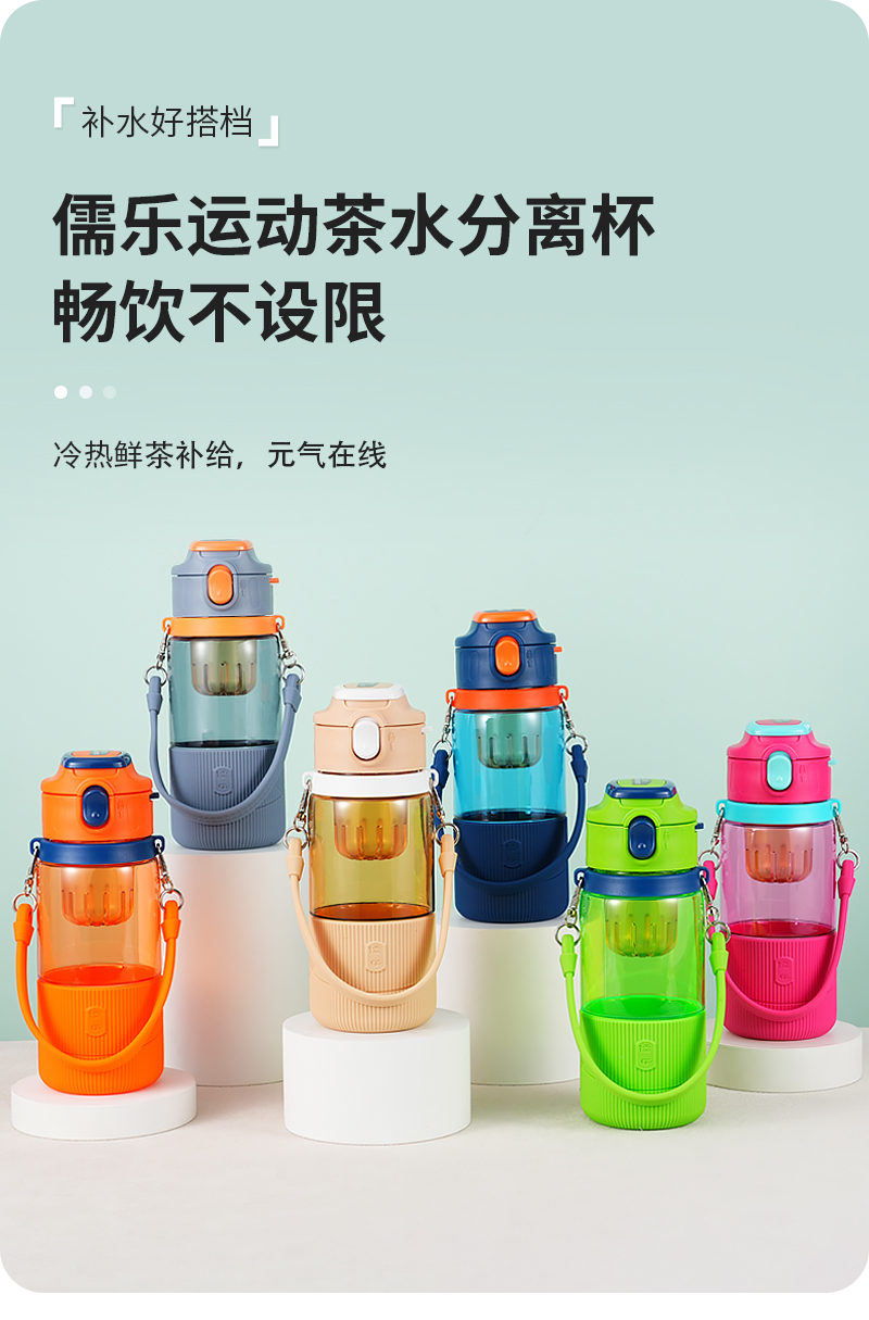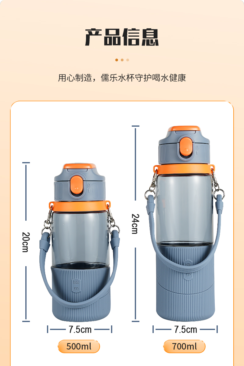 儒乐 运动水杯,手提绳便携直饮杯背带户外大容量随行吸管杯