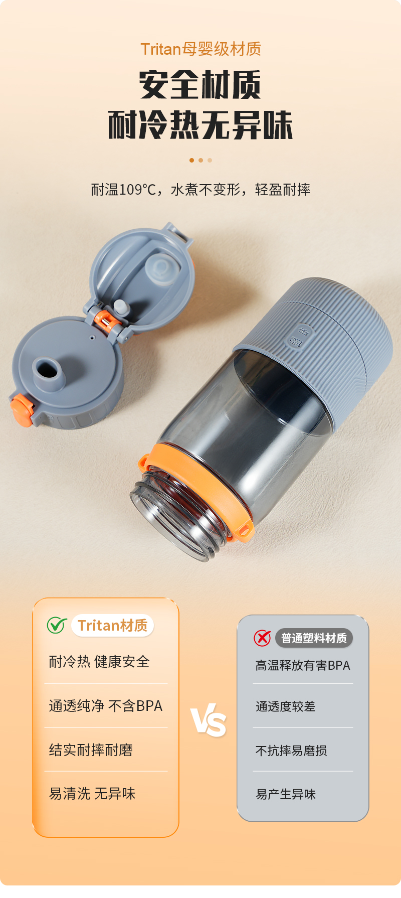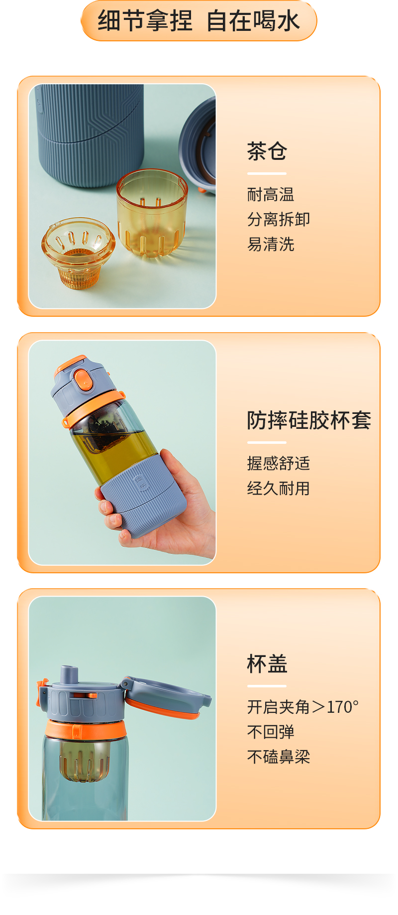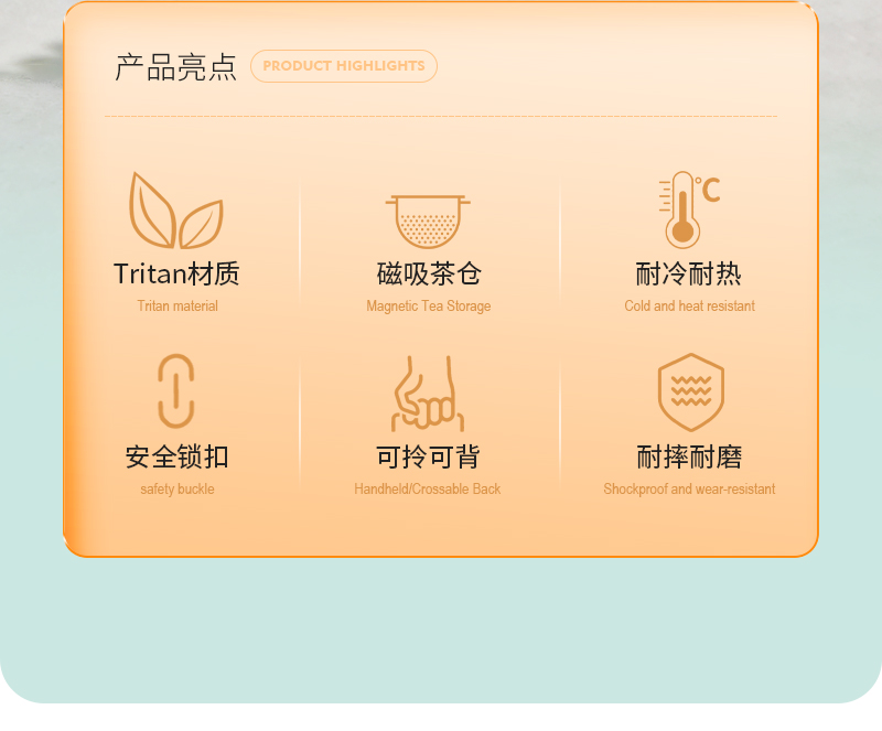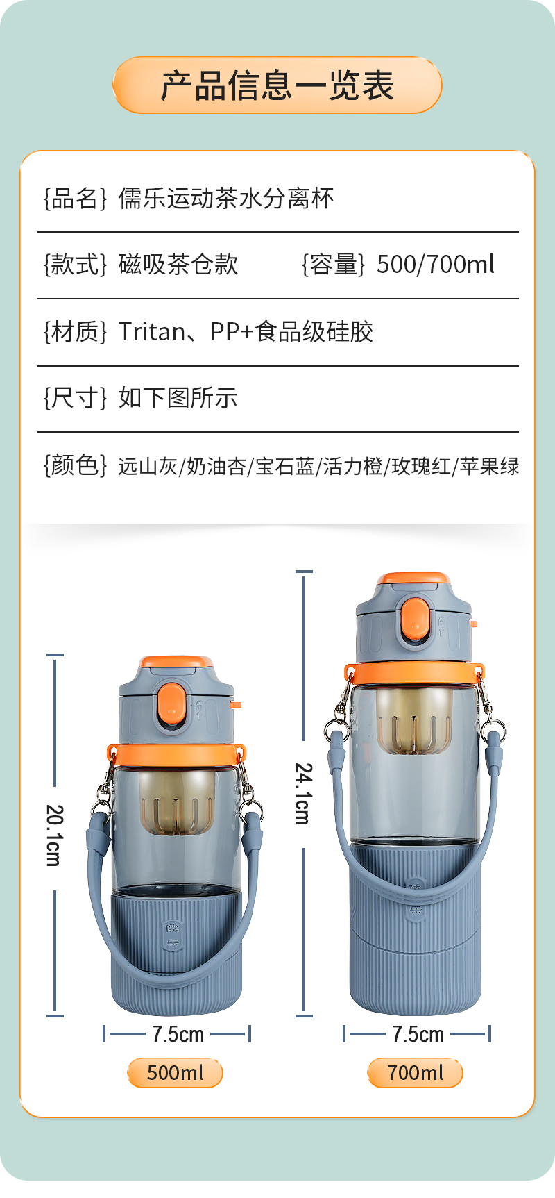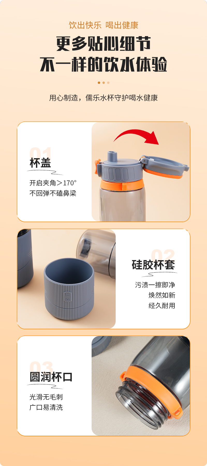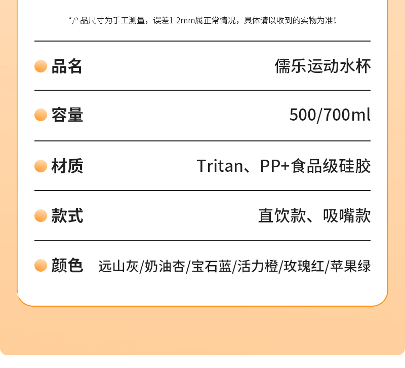 儒乐 运动水杯,手提绳便携直饮杯背带户外大容量随行吸管杯