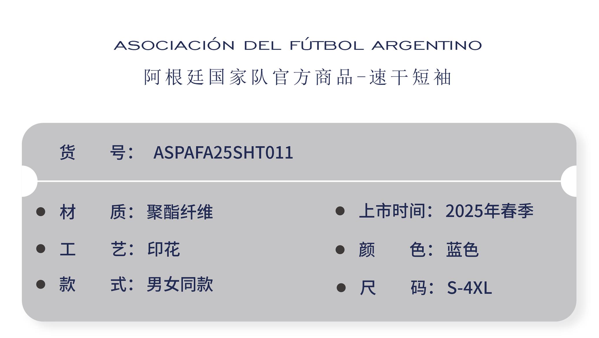 【官方正版】阿根廷国家队 | 夏季深蓝印号短袖T恤透气清爽
