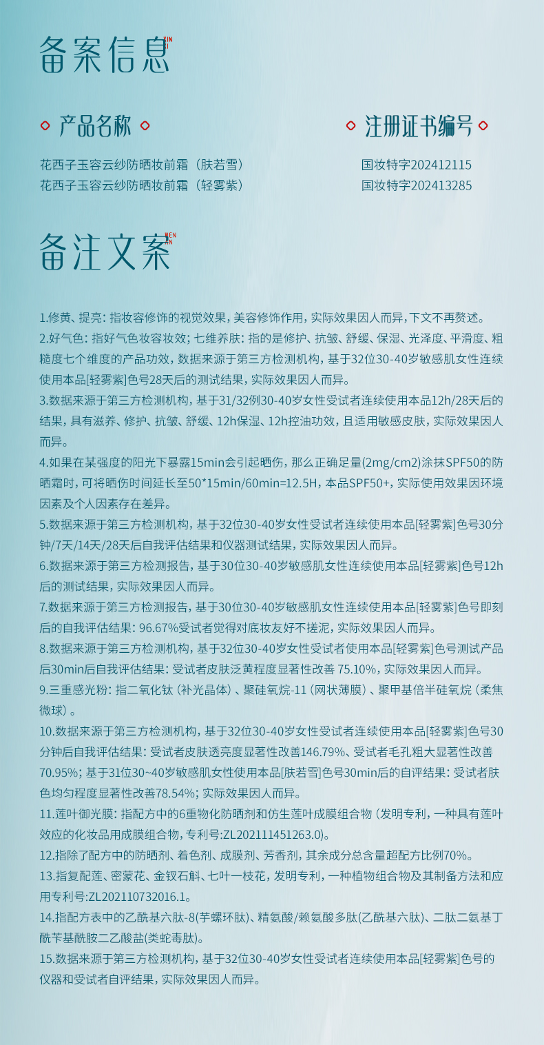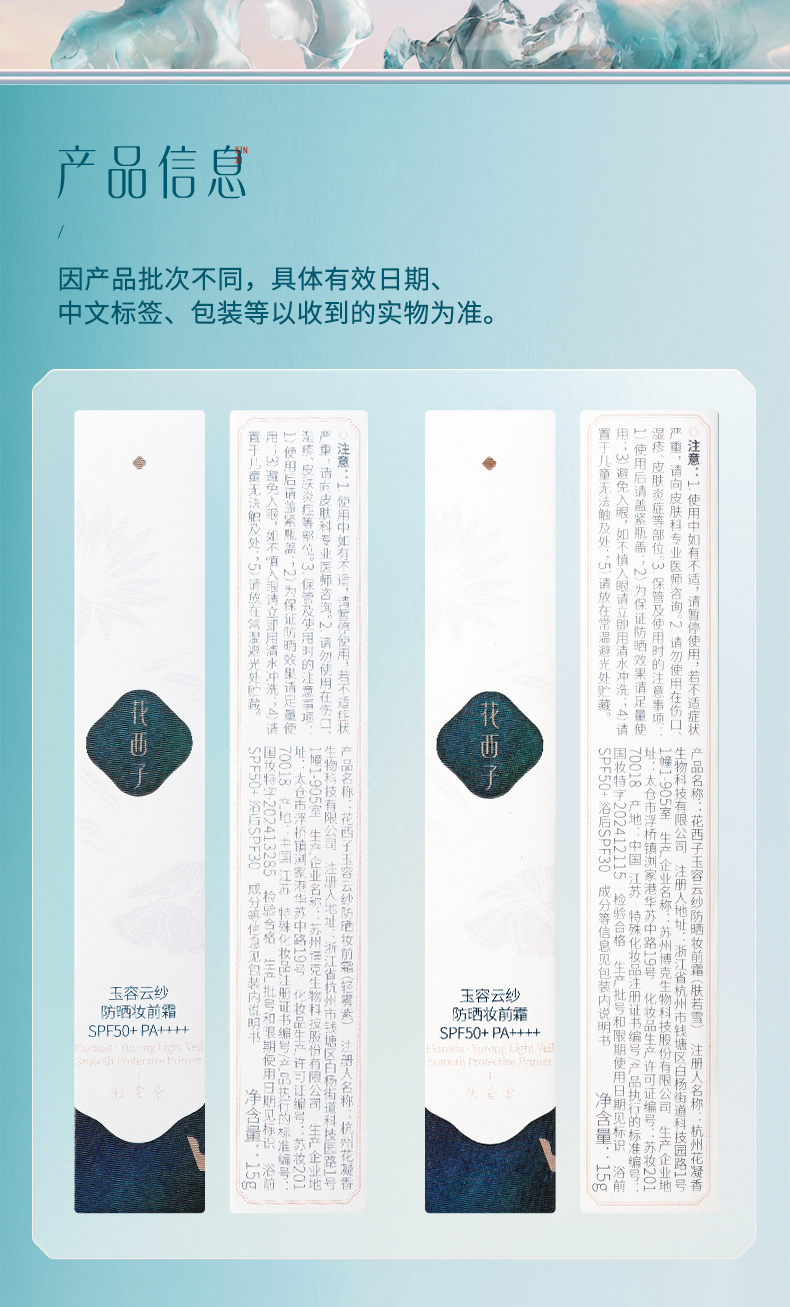 【门店专享】花西子玉容云纱防晒妆前霜-15g口袋装-SPF50+/PA++++