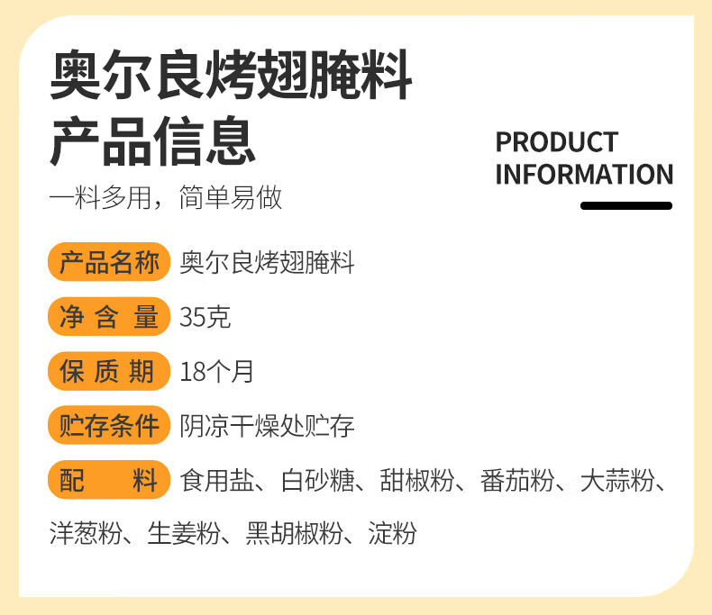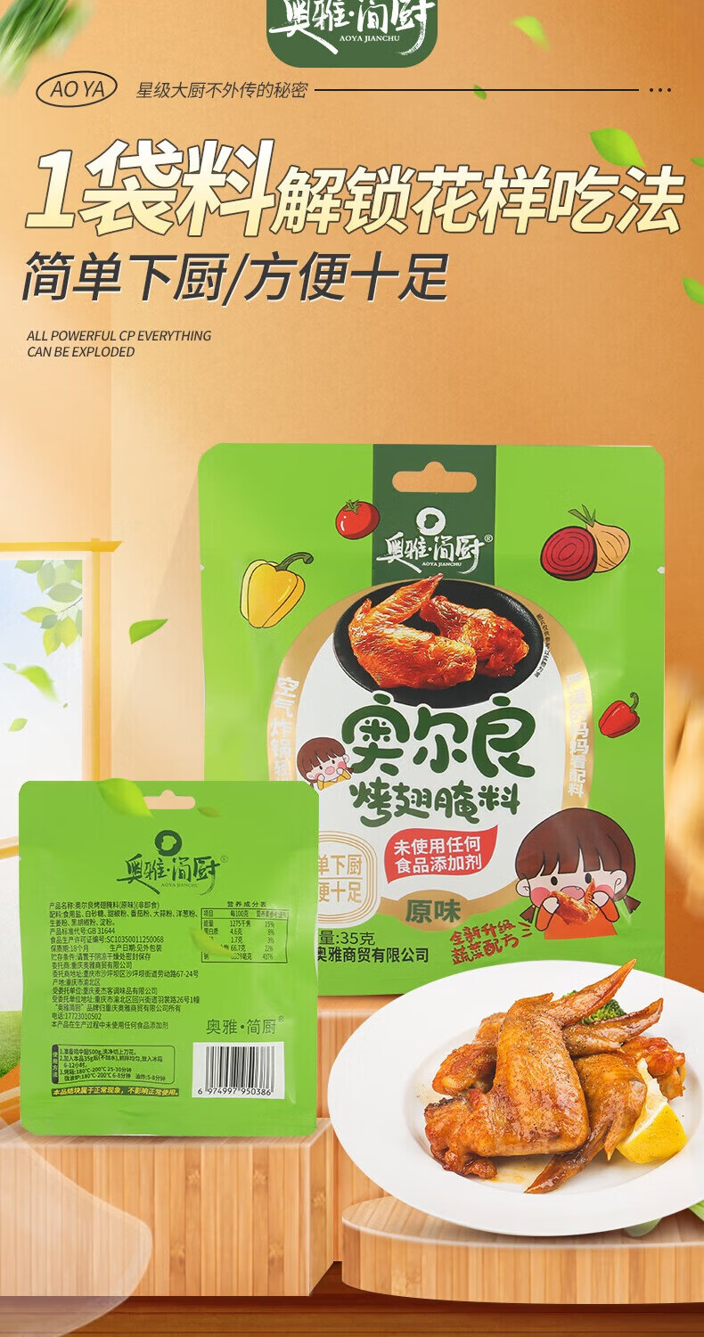 奥雅简厨 奥尔良烤翅腌料原味35g/袋