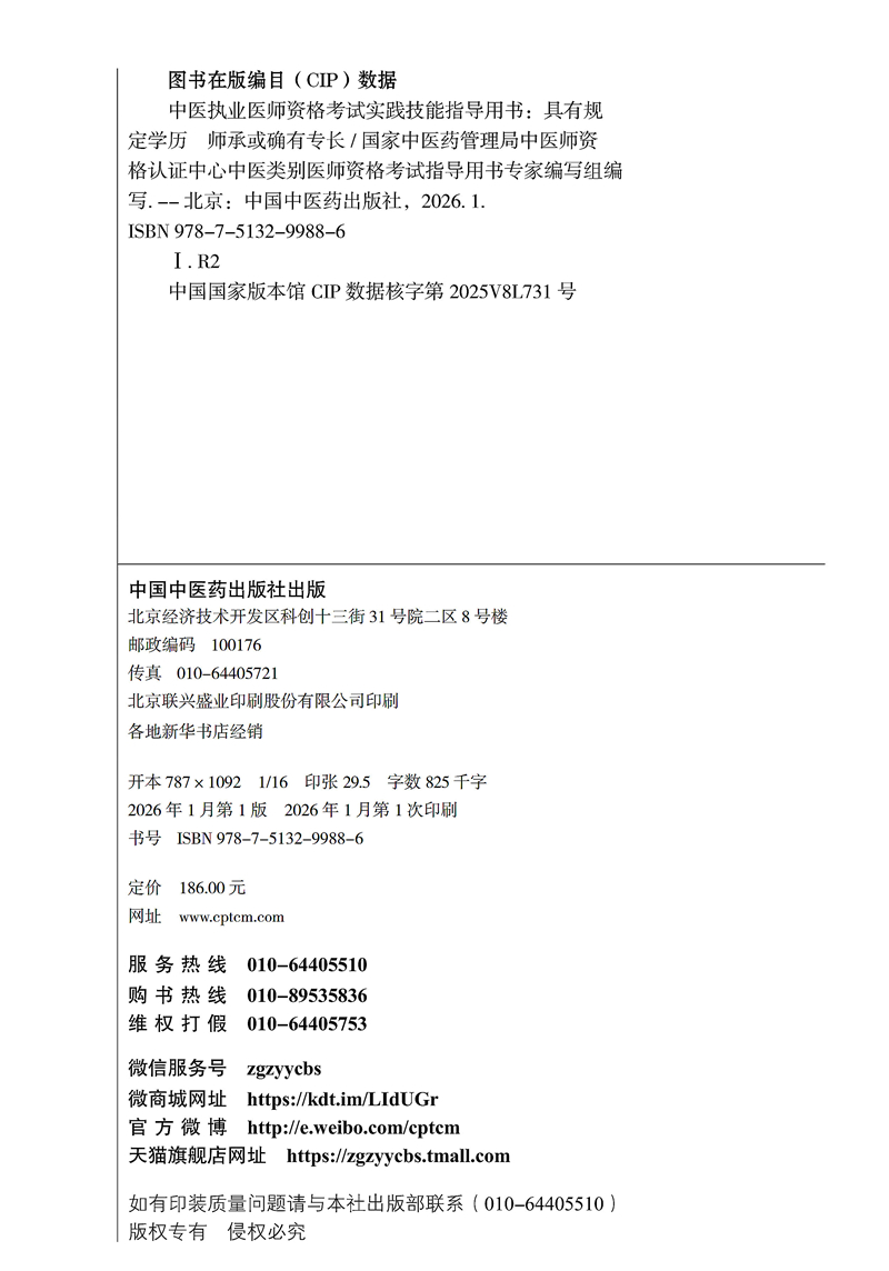 书名:2026年中医执业医师资格考试实践技能指导用书