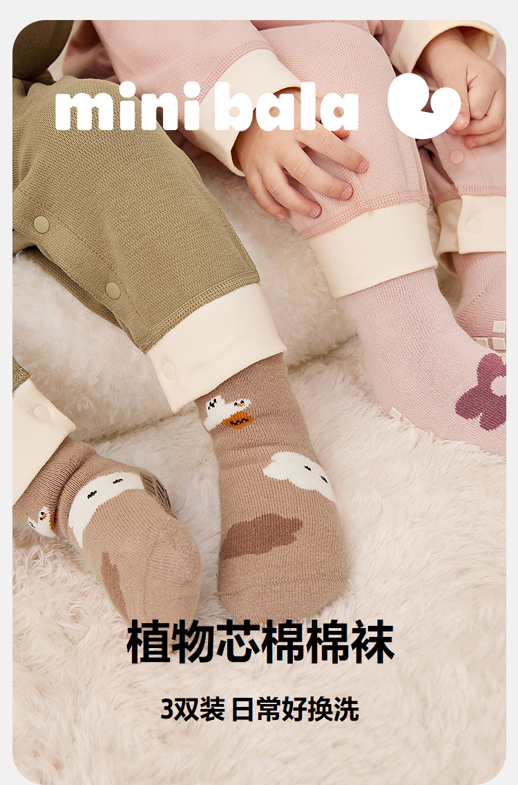 【3双装】迷你巴拉冬新款儿童舒暖袜宝宝可爱棉保暖袜子