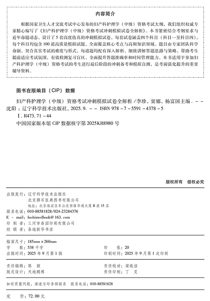 书名:2026妇产科护理学(中级)资格考试冲刺模拟试卷全解析