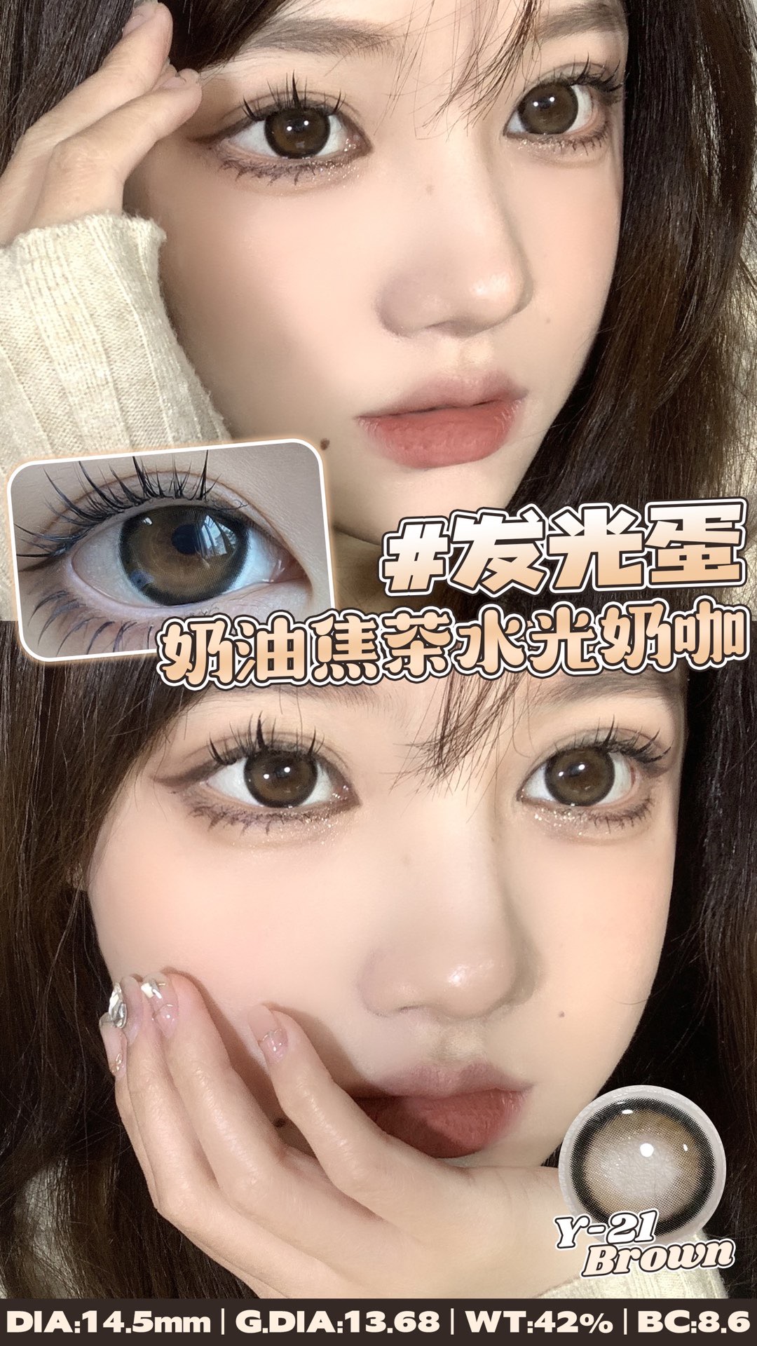 玻璃珠棕 直径14.2染色直径13.2基弧8.6含水量42% 灵动感原地出道
