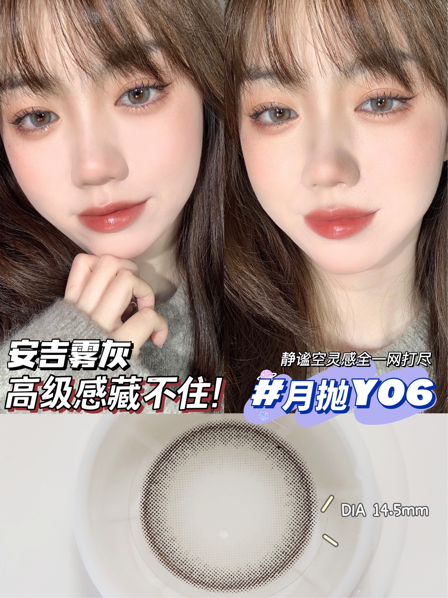 安吉雾灰 直径14.5染色直径13.7基弧8.6含水量42%🌫️ 浪漫至极的高级混血惊艳到犯规