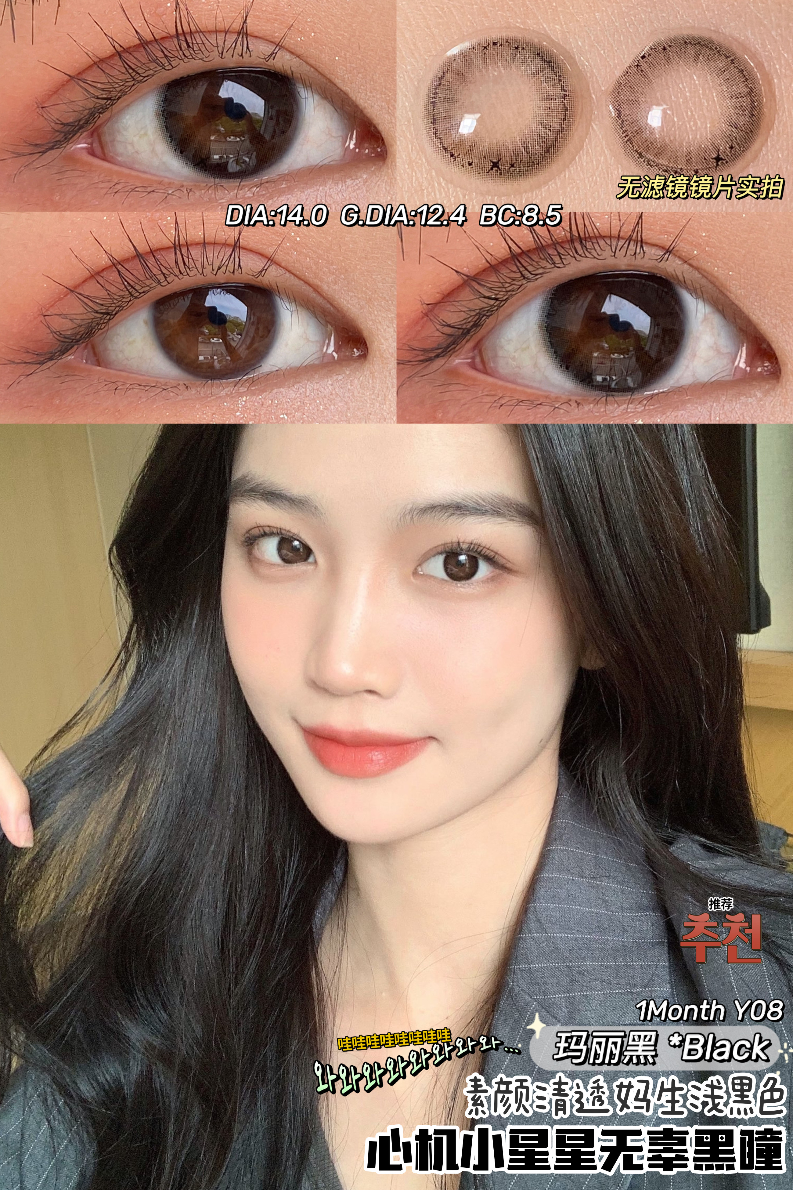 玛丽黑 直径14.0染色直径12.4基弧8.5含水量42% 就算淡颜出街也略胜一筹