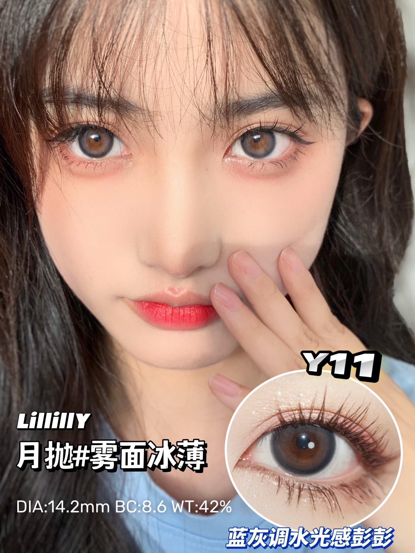雾面冰薄 直径14.2染色直径13.4基弧8.5含水量42%满分水光特效一秒提亮高光感
