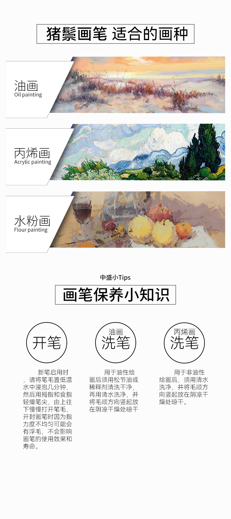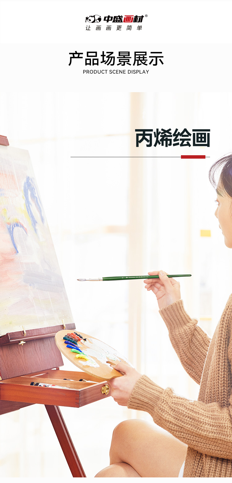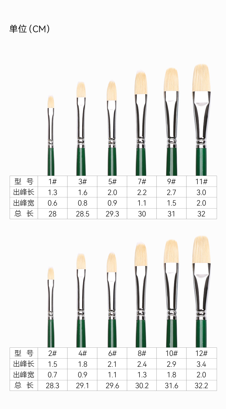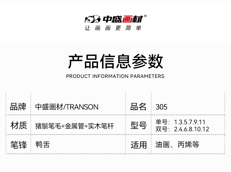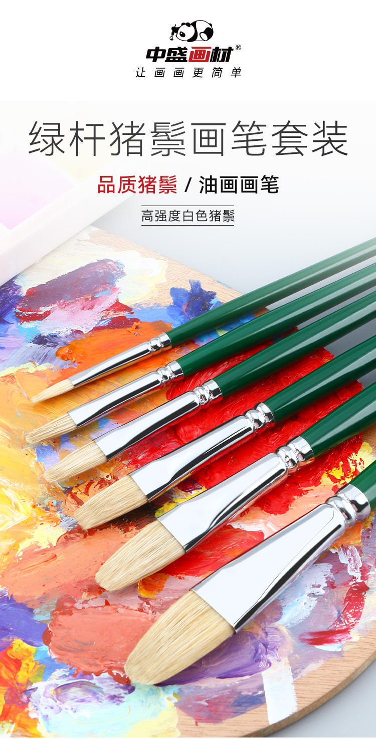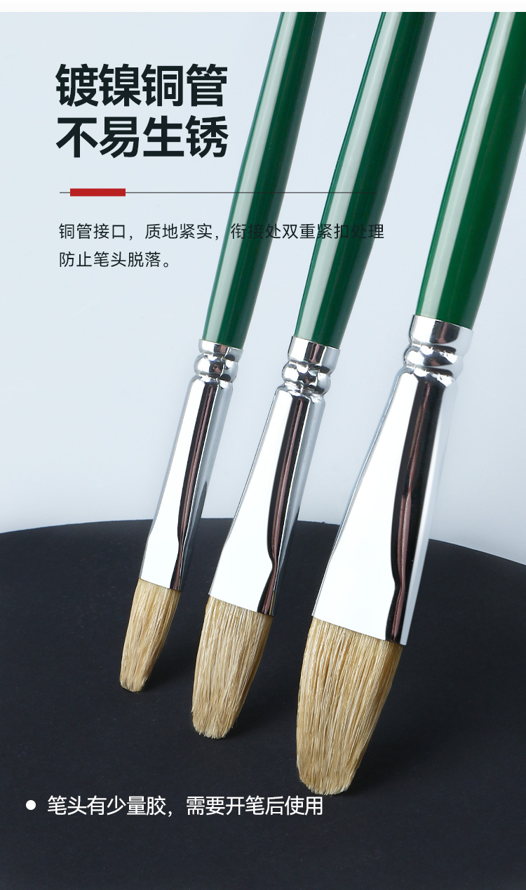 中盛画材 305单双绿杆原鬃 猪鬃水粉笔水粉套装笔油画笔