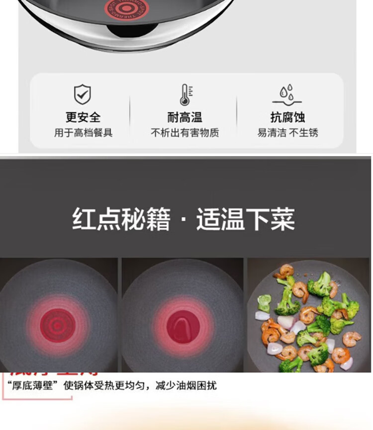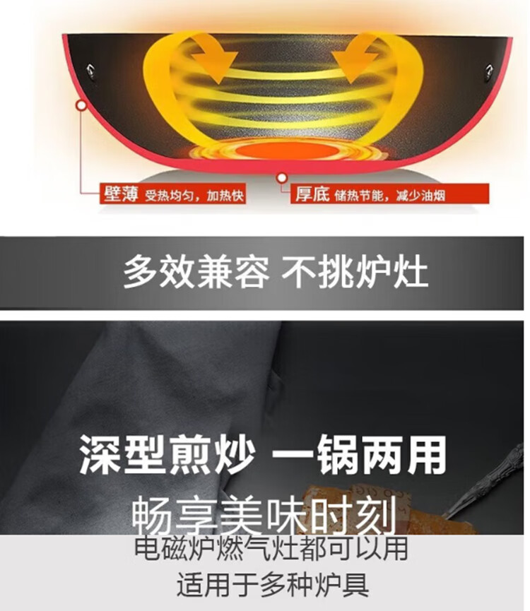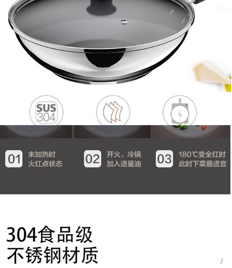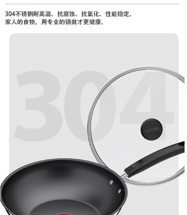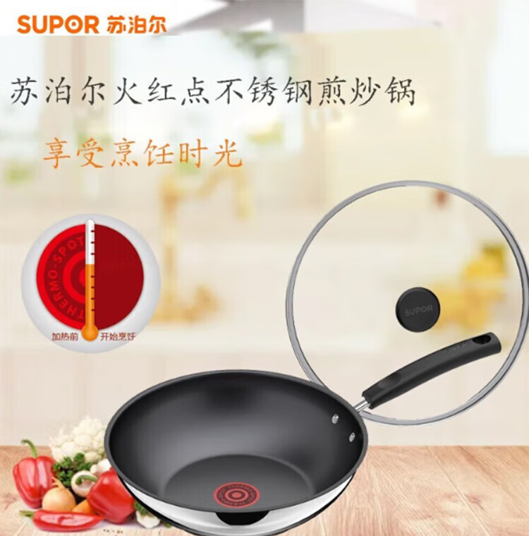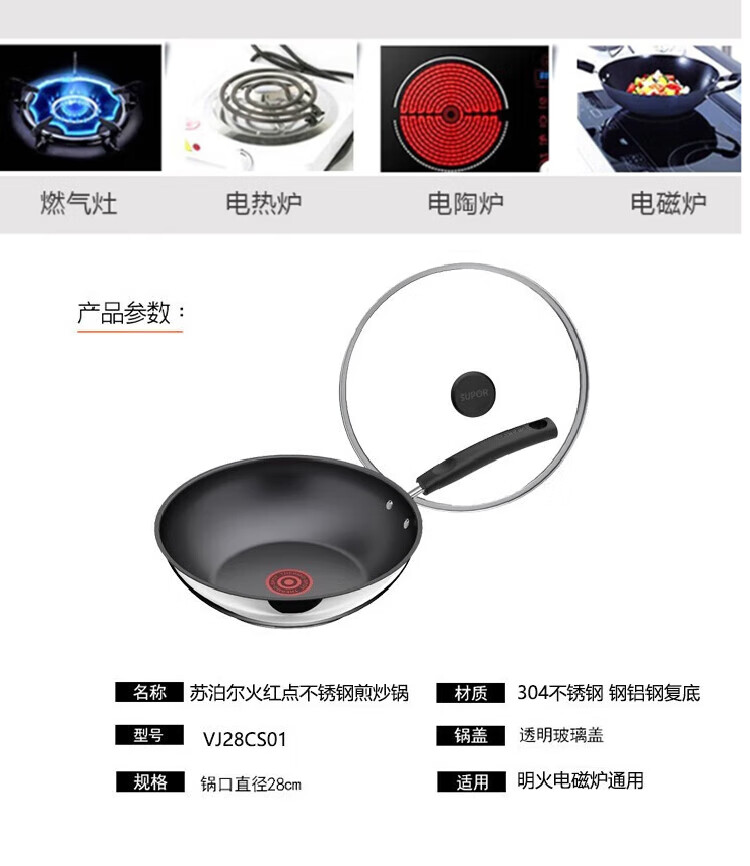 苏泊尔(SUPOR)火红点不锈钢煎炒锅燃气电磁炉通用 VJ28CS01