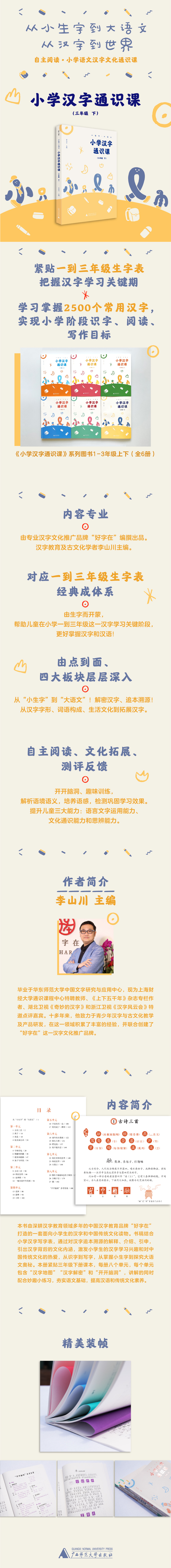小生字大语文系列小学汉字通识课三年级下 封底扫码赠送视频和写字本 紧贴小学统编教材生字学习 汉字文化专业品牌 好字在 李山川