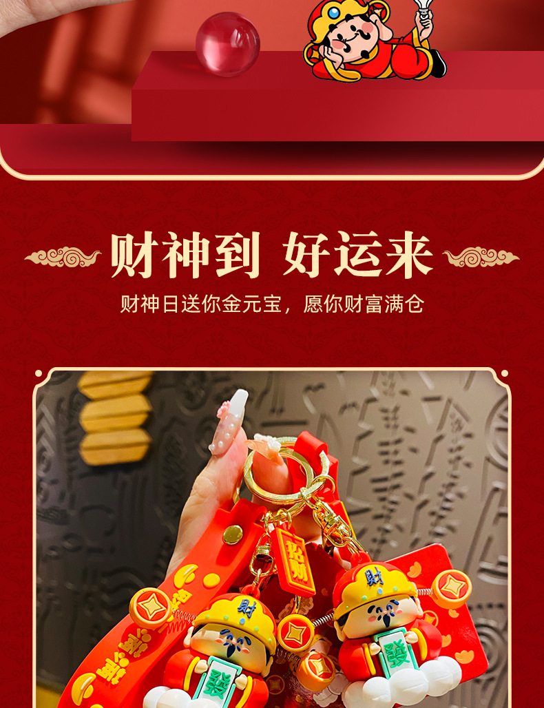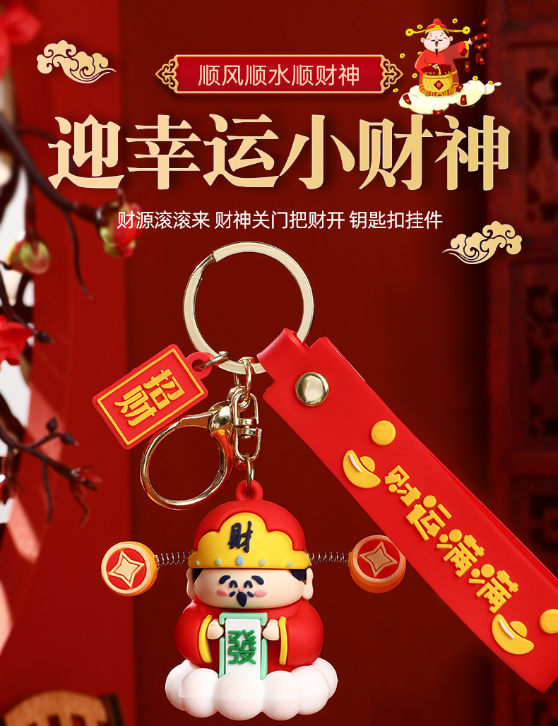 【顺风顺水顺财神!迎幸运小财神】创意卡通幸运小财神钥匙扣喜庆汽车链公仔书包挂件情侣小礼品,财源滚滚来,财神关门把财开。ry