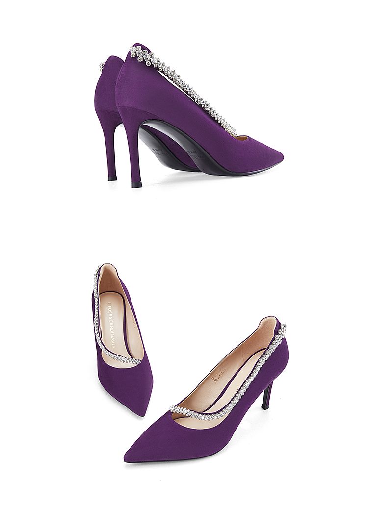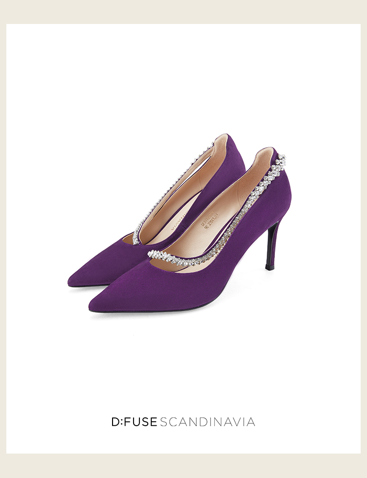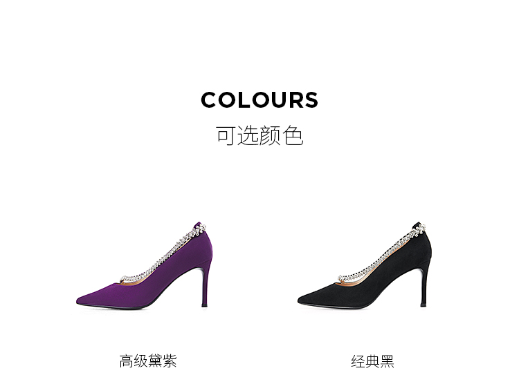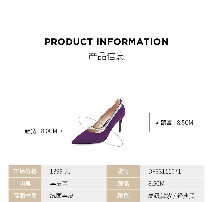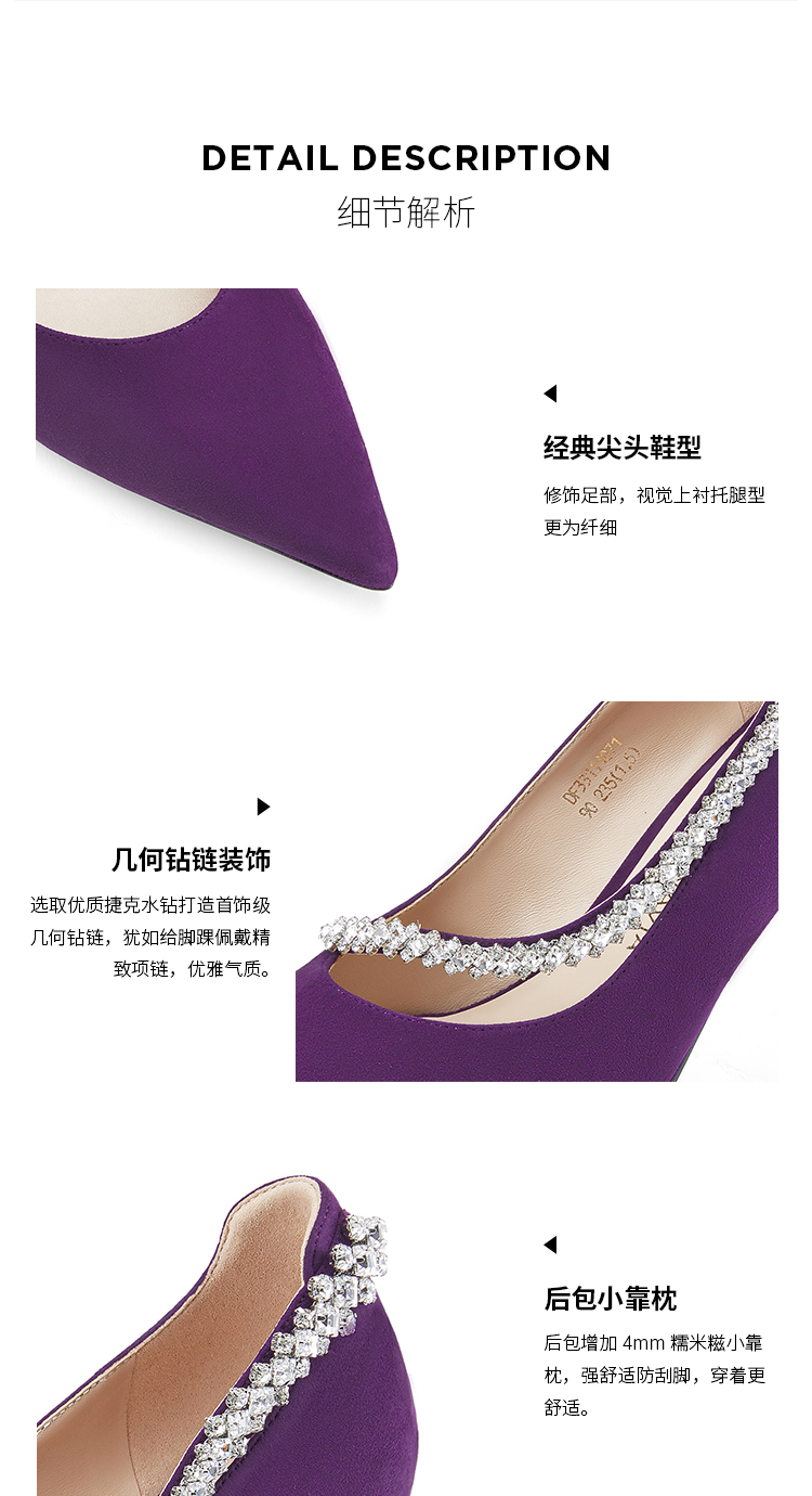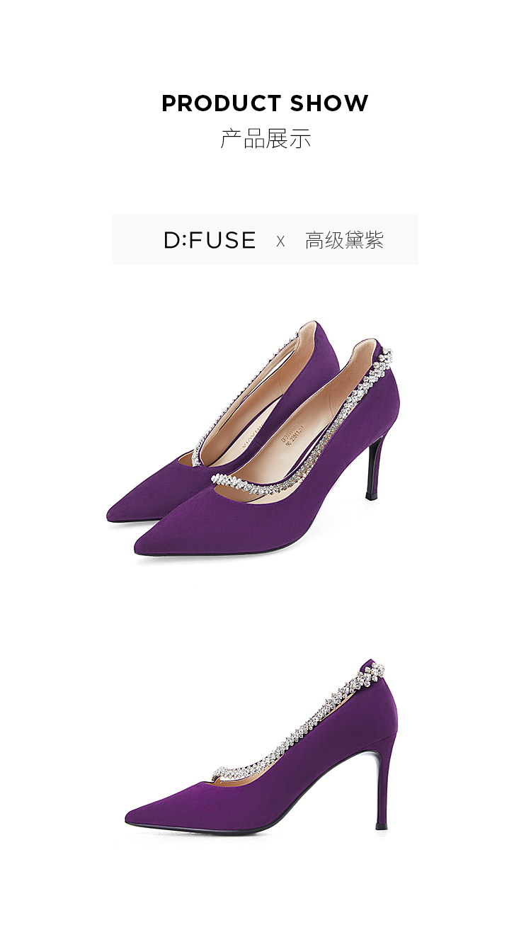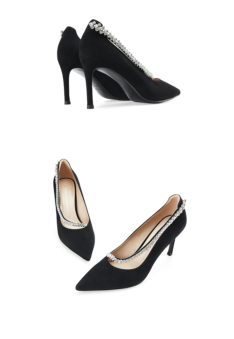 Dfuse迪芙斯秋季新款绒面羊皮尖头钻链高跟鞋女DF33111071