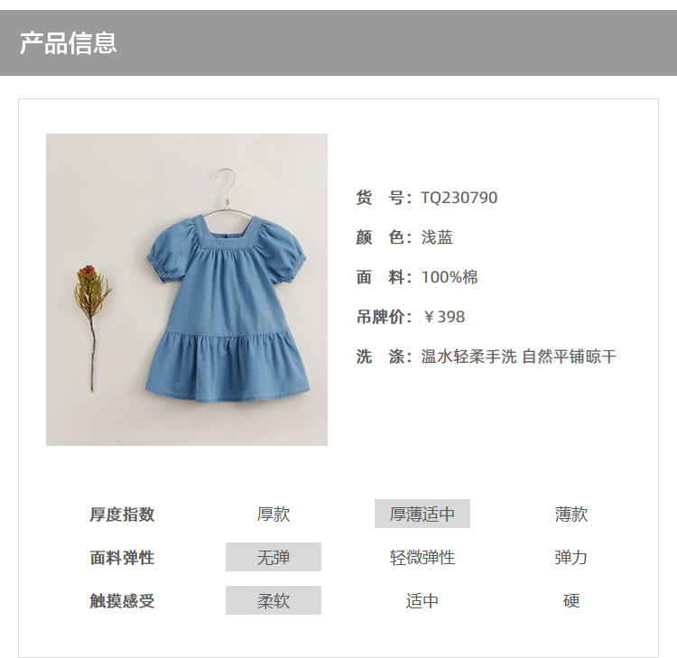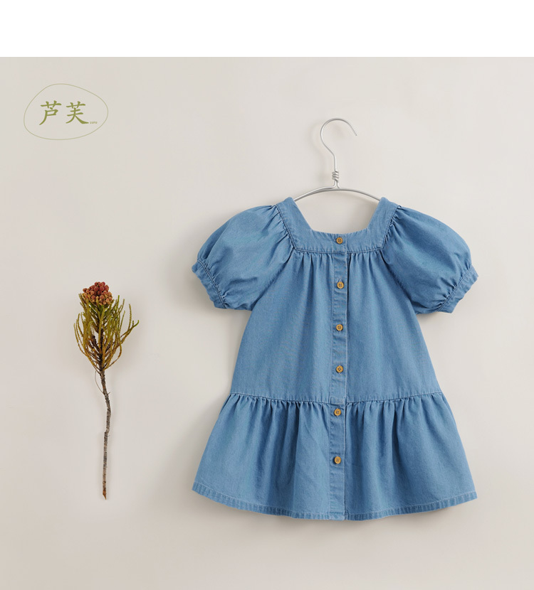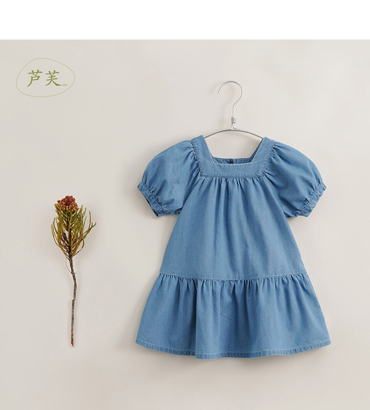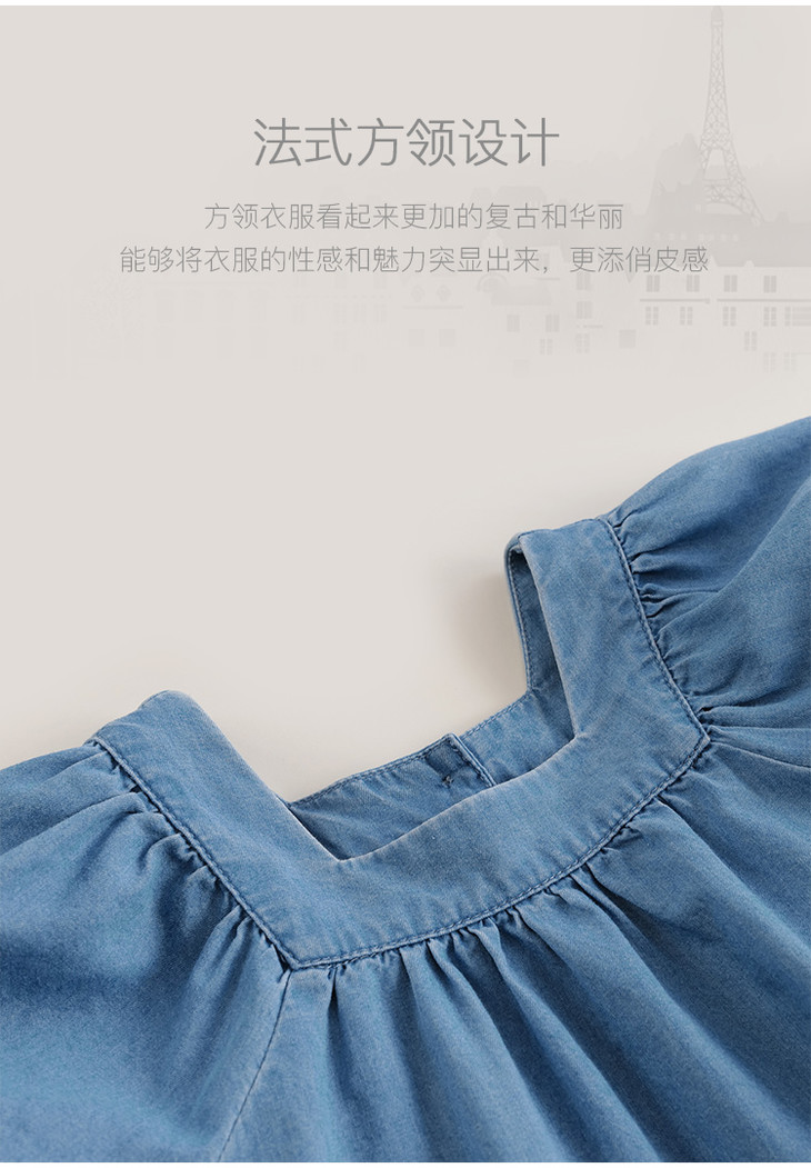 【马克珍妮 芦芙】新款夏装 女童方领纯棉牛仔连衣裙230790