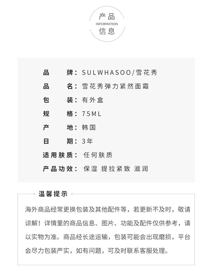 雪花秀滋盈弹力面霜 75mlSULWHASOO/sulwhasoo【CDF】