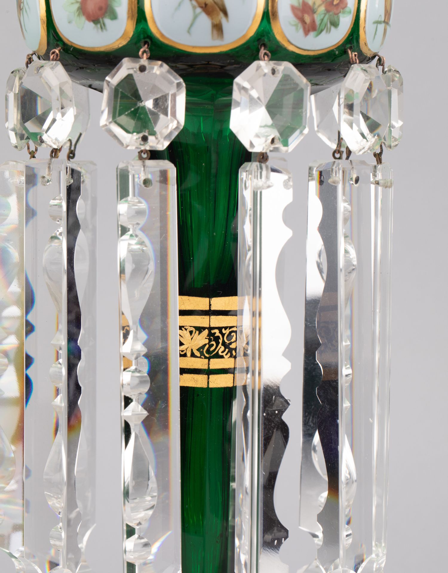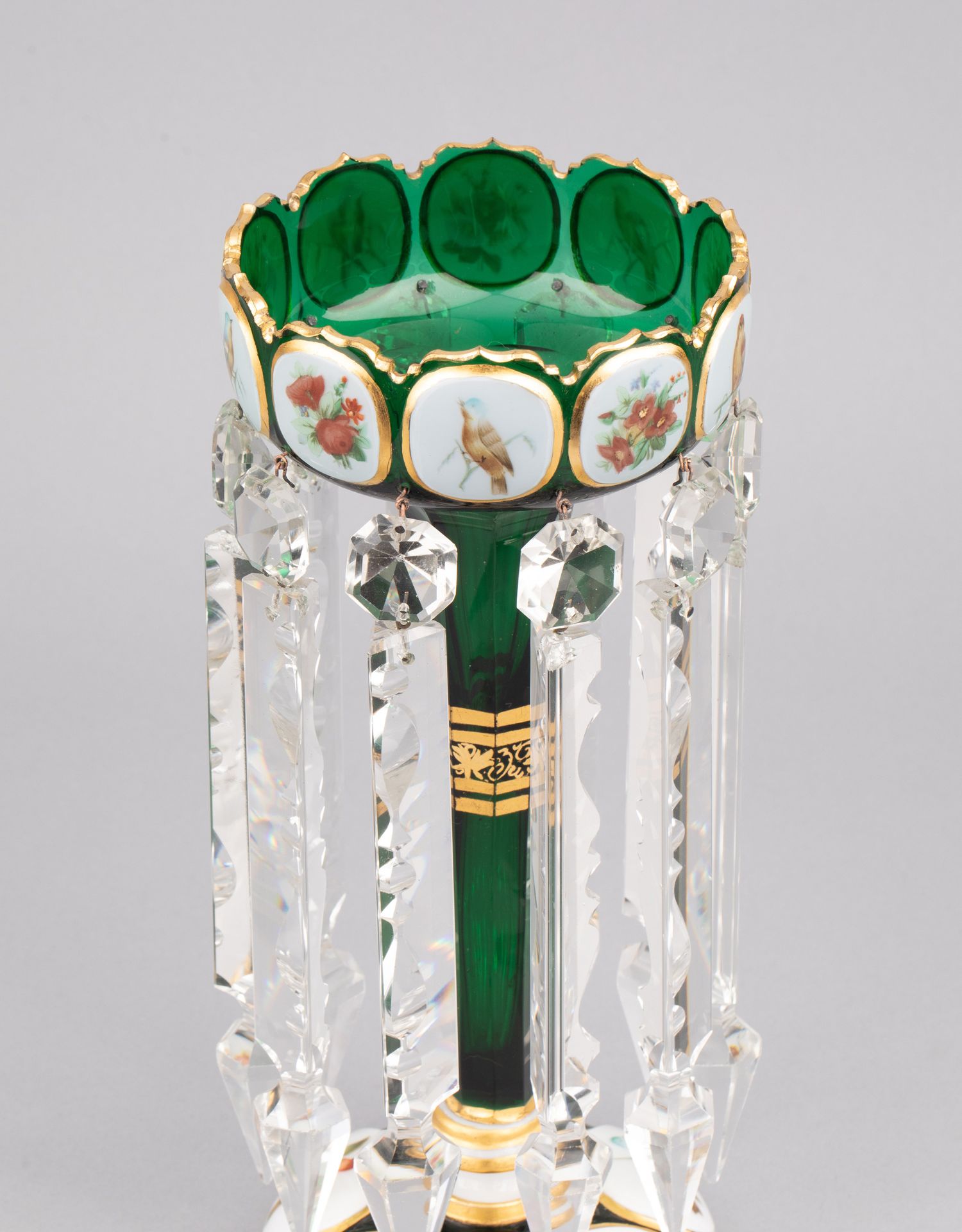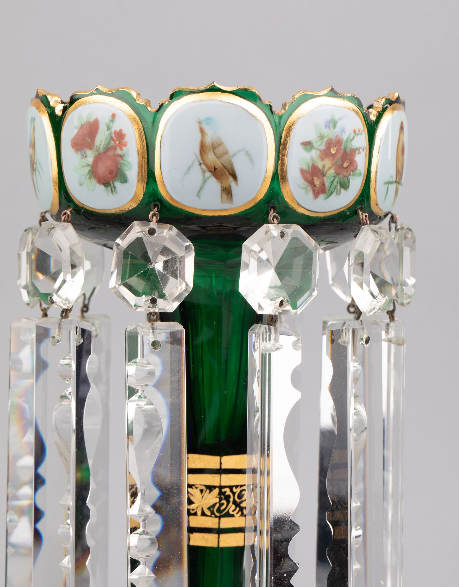 独角鹿西洋古董波西米亚花鸟主题彩绘描金菠萝樽水晶流苏烛台一对