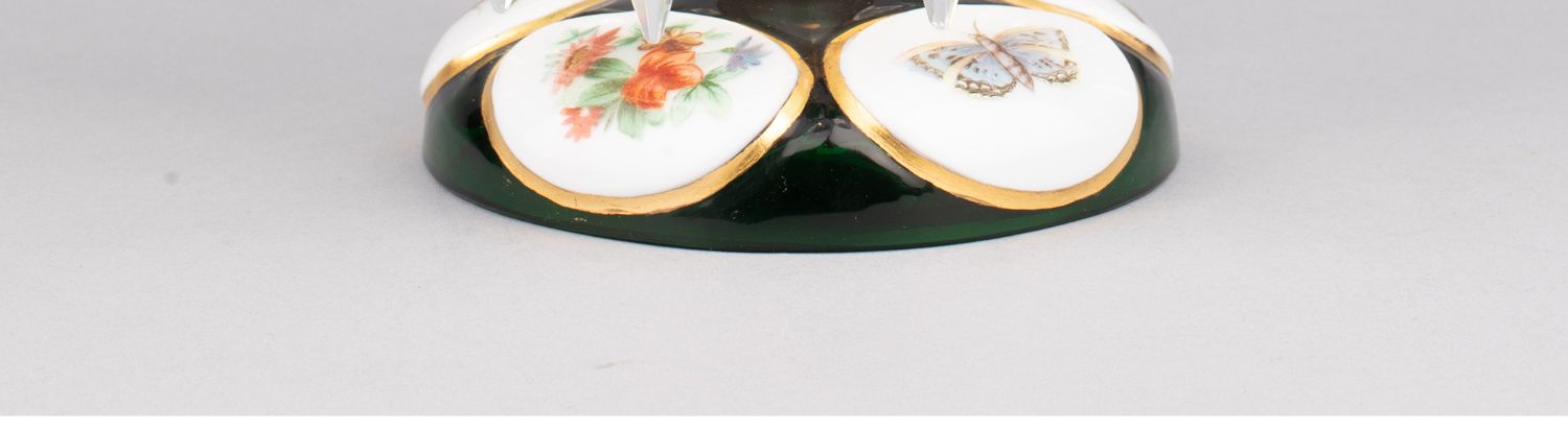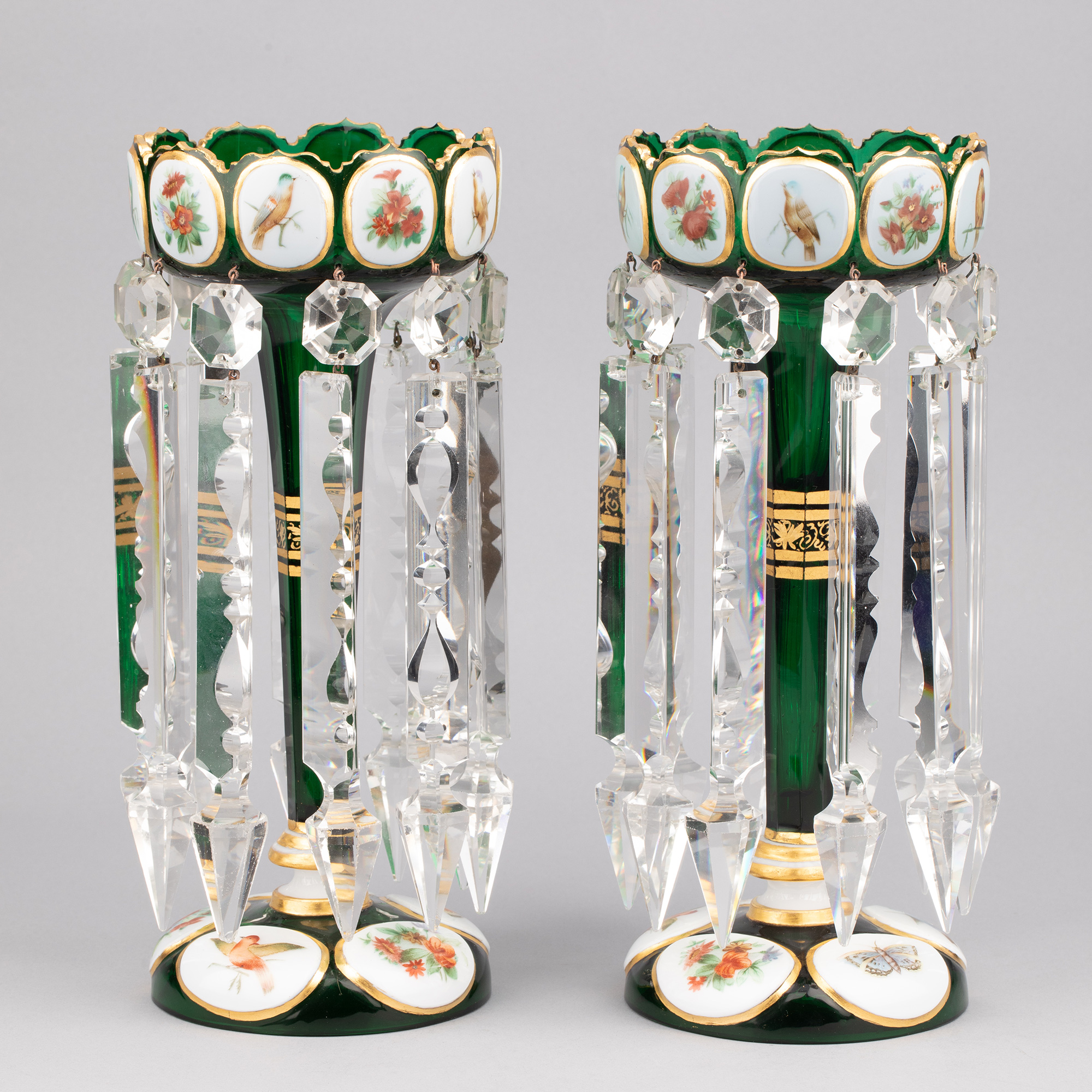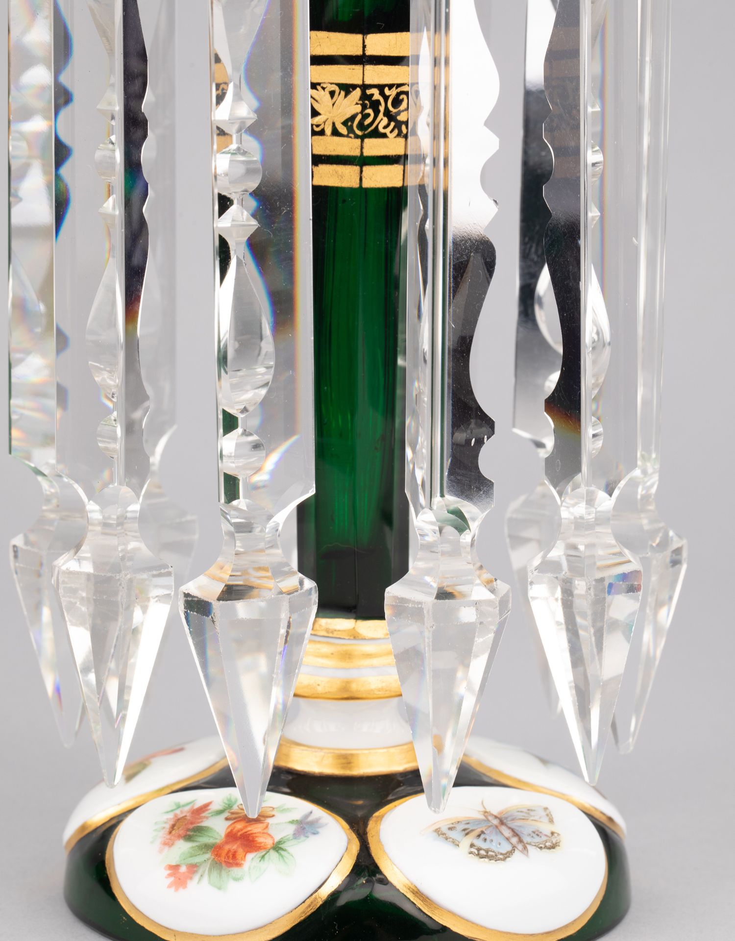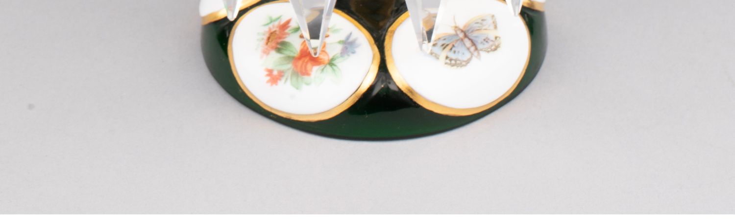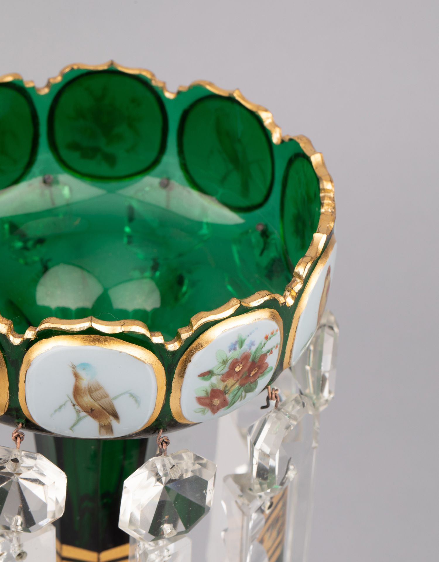 独角鹿西洋古董波西米亚花鸟主题彩绘描金菠萝樽水晶流苏烛台一对