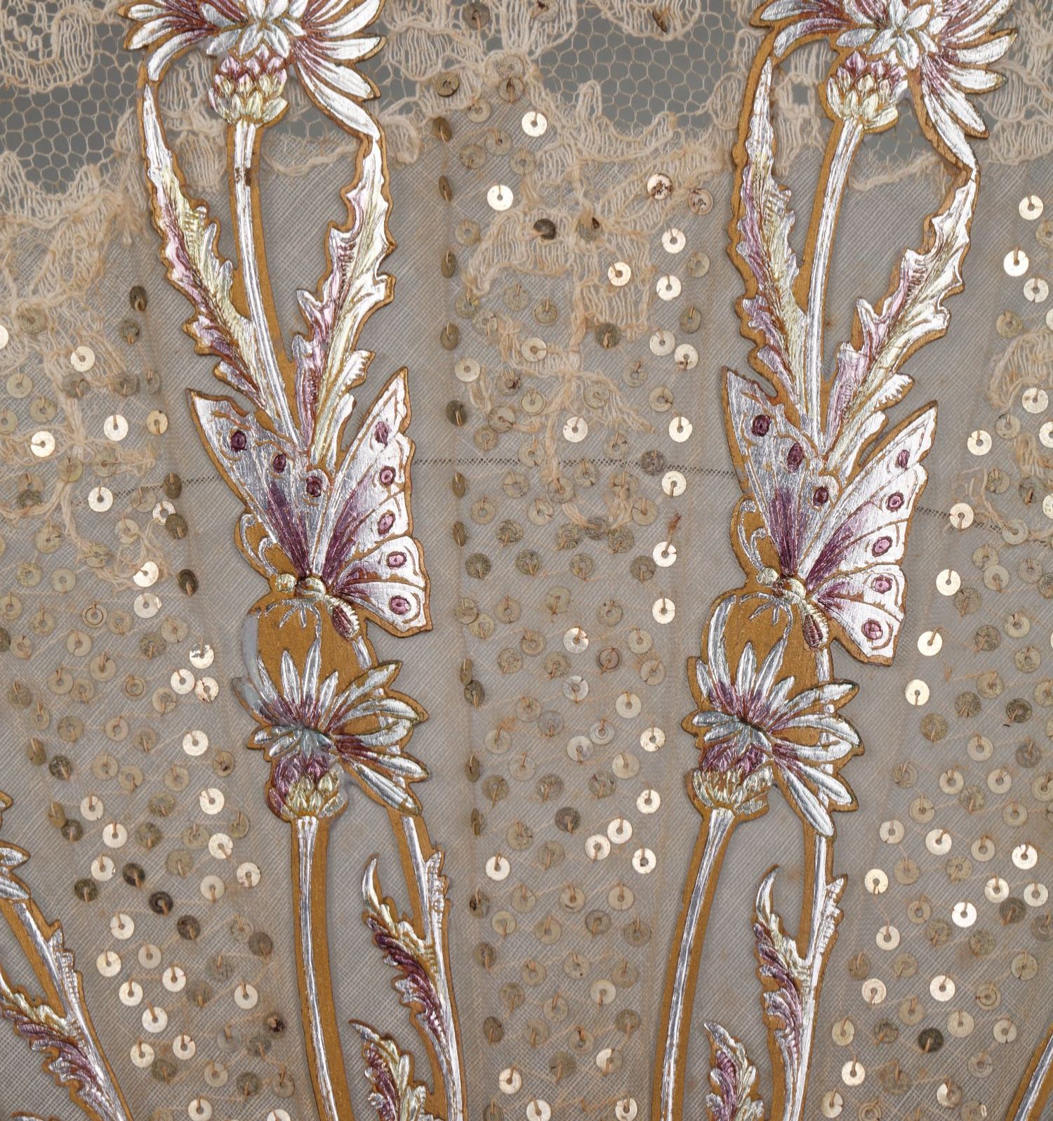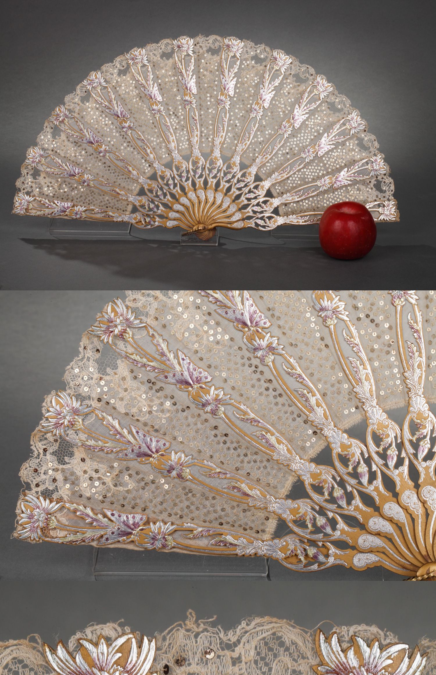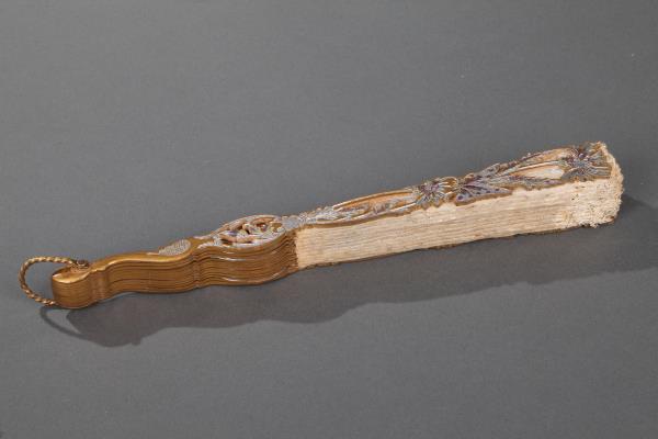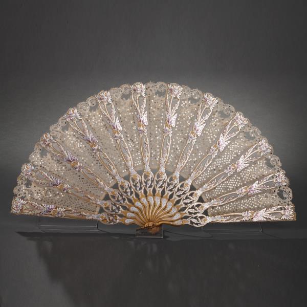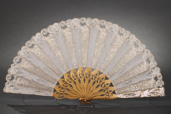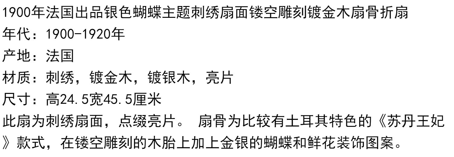 独角鹿西洋古董法国银色蝴蝶刺绣扇面镂空雕刻镀金木扇骨折扇