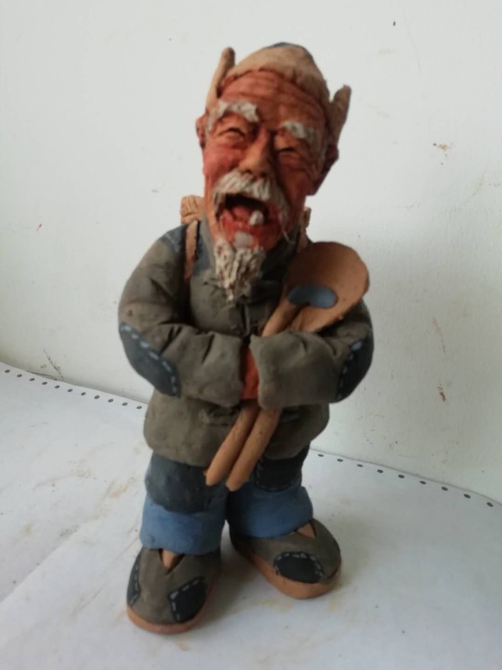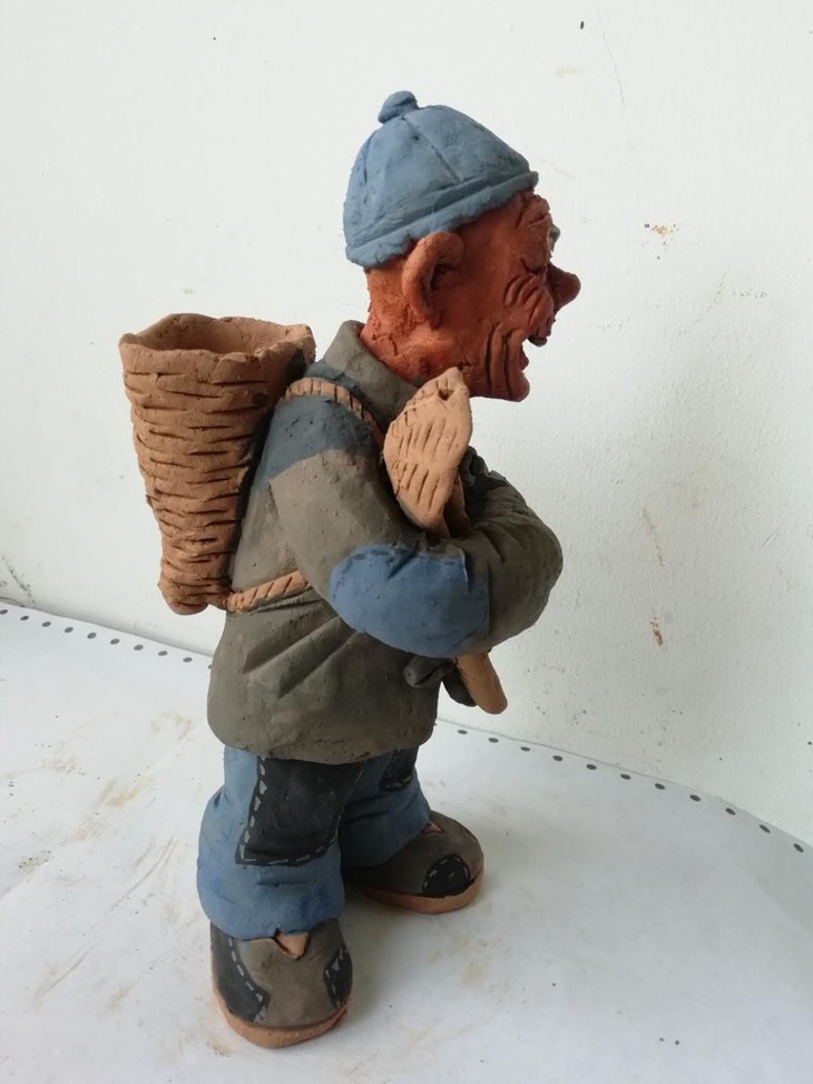 这两件作品名为《拾粪老人》, 表现的是六七十年代艰苦朴素勤劳乐观的生活。城乡老人都很勤劳,不能上工,但天天拾牲蓄粪,晒干积在屋里,等冬天烧火取暖。