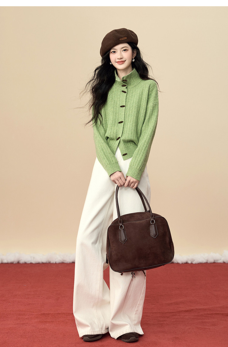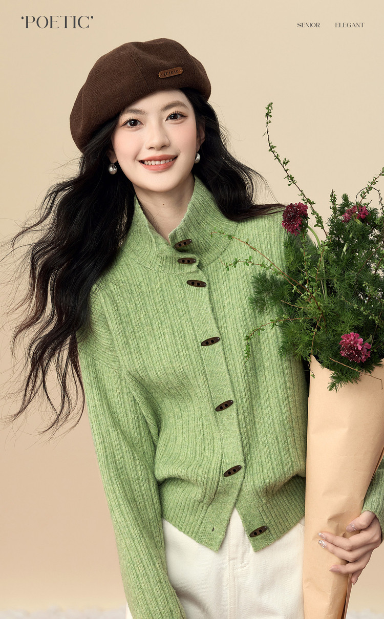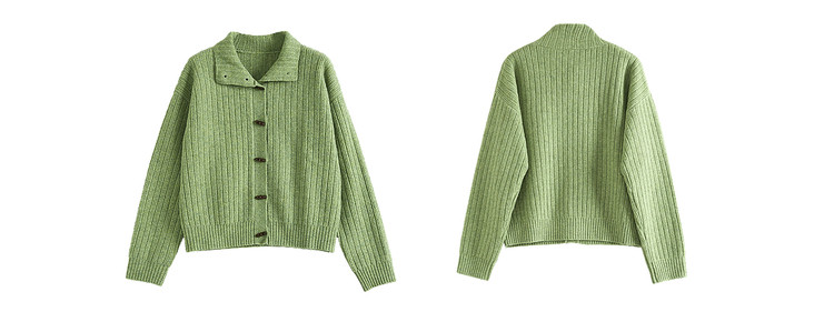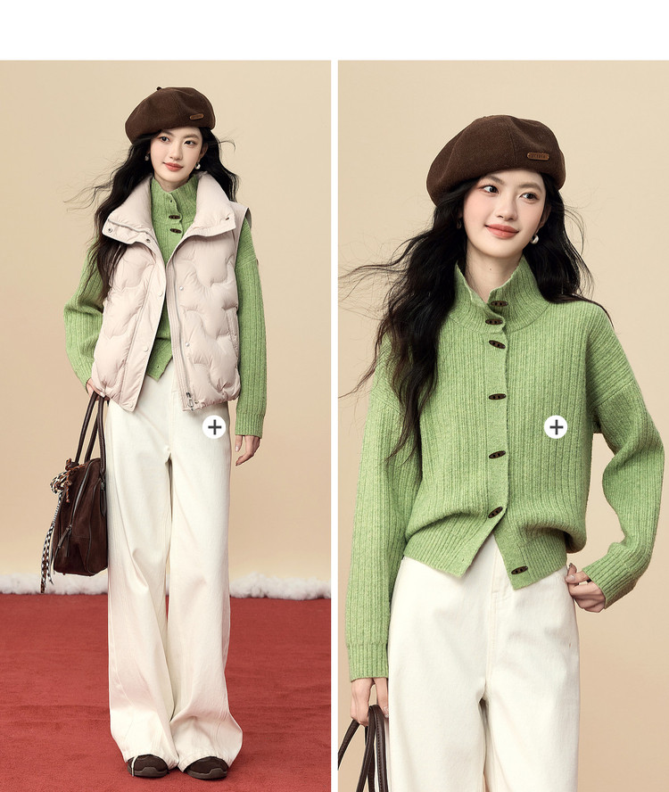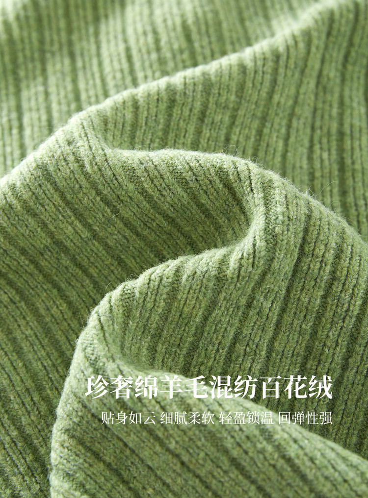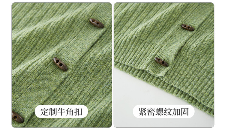【12/24新品5.7折】熙世界巨好看绝美高领绿色毛衣女开衫秋冬慵懒风休闲牛角扣针织衫